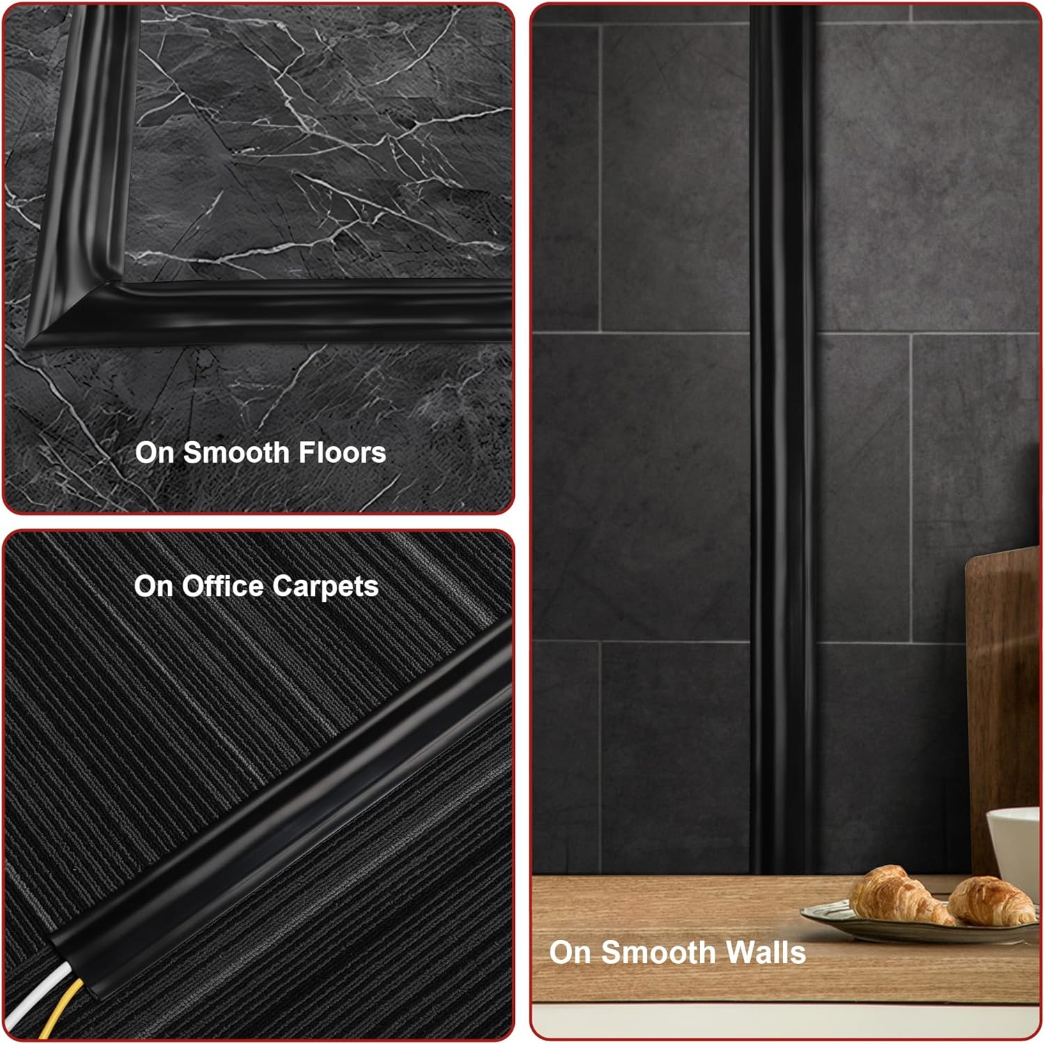 - Multi-functional PVC Cable Manager: The floor cord covers come with self-adhesive backing, suitable for managing messy cables on smooth floors or walls; Simply attach the hook fastener to the back of the cord cover, then you can also securely adhere it to carpet. Meets various cable management needs