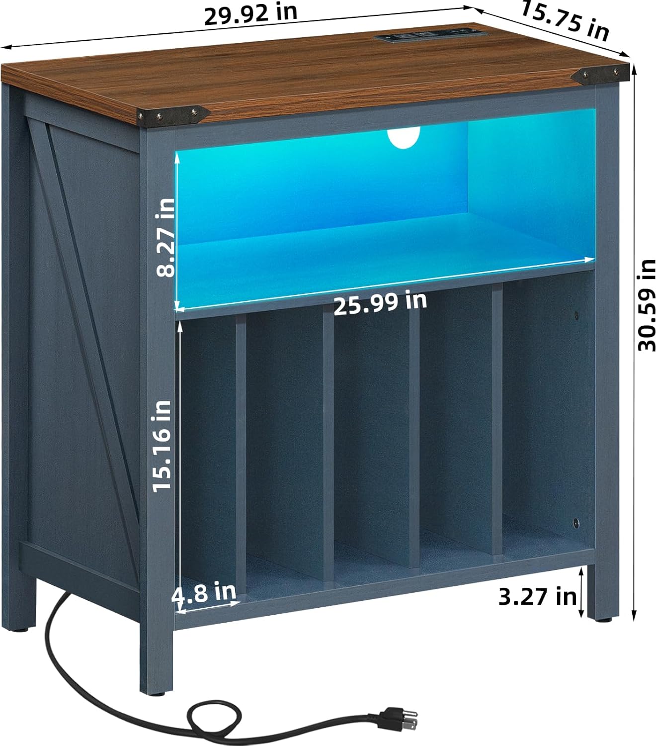 Large Record Player Stand with Charging Station & LED Lights, Vinyl Records Storage Holder Cabinet Holds up to 230 Albums, Turntable Stand for Music Room, Bedroom, Living Room, Office (Blue)