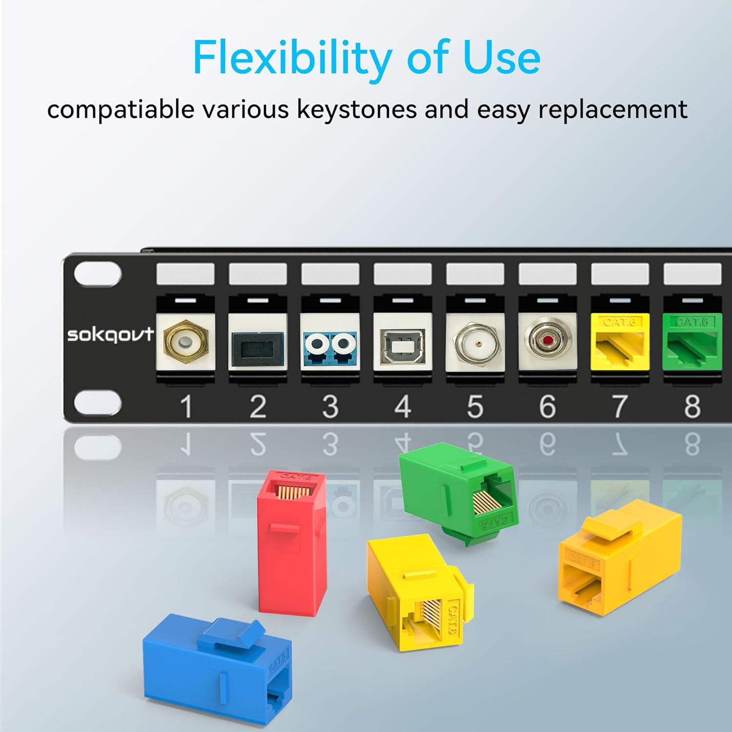 - Flexibility of Use: Rj45 patch panel blank makes the job easy when just need some ports of patch panel. Keystone patch panel 12 port also has flexibility of using various keystones,such as ethernet, usb, HDMI and blanks, and replacement if a single jack go bad, just replace the individual jack instead of the entire panel.