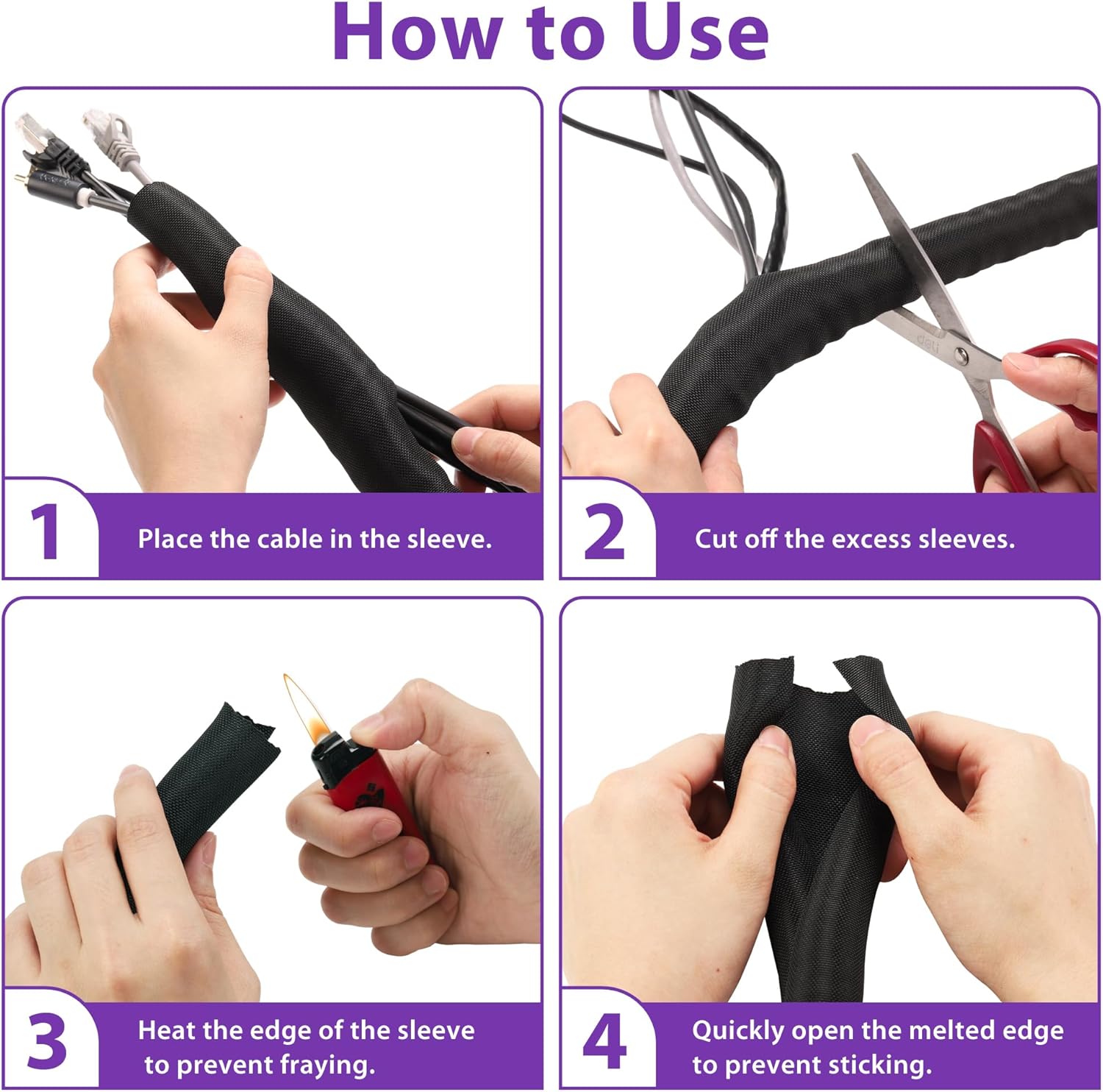 - Flexible & Talented Material: The wire management sleeve is made of high-density PET, with a working temperature range of -50°C to +150°C and a melting point temperature of 240°C ± 5°C. It is highly wear-resistant, and safe. The wire wrap also has the highest flame retardant rating: UL94 V-0, ensuring durability. Environmental class: ROHS, no chemical odor and reliable.