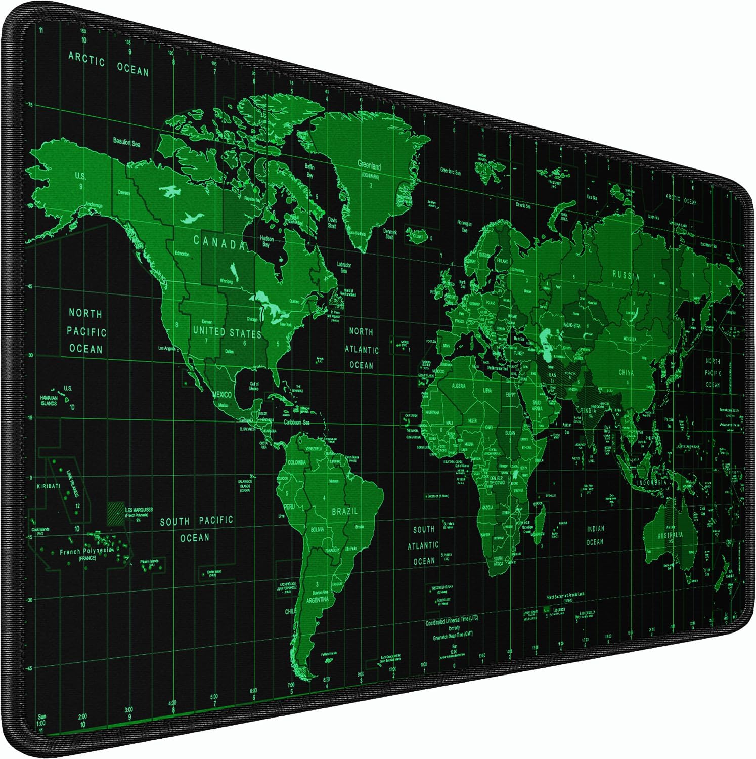 Large Gaming Mouse Pad, 31.5x15.7 inch Large Extended Computer Keyboard Mouse Mat, Water Resist Non-Slip Mousepad Rubber Base Long XXL Desk Mouse Pad for Work & Gaming, Office & Home, Green Map