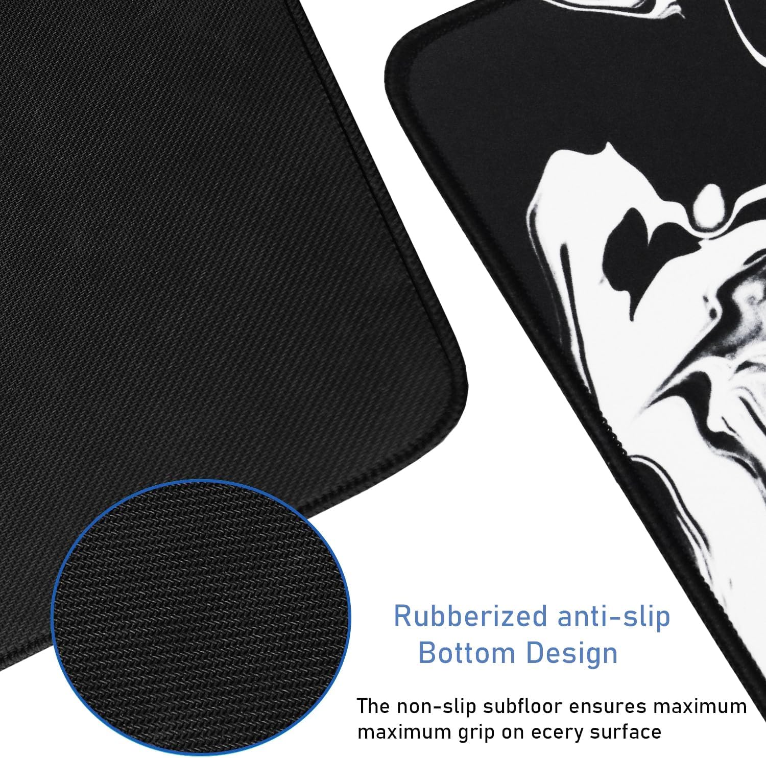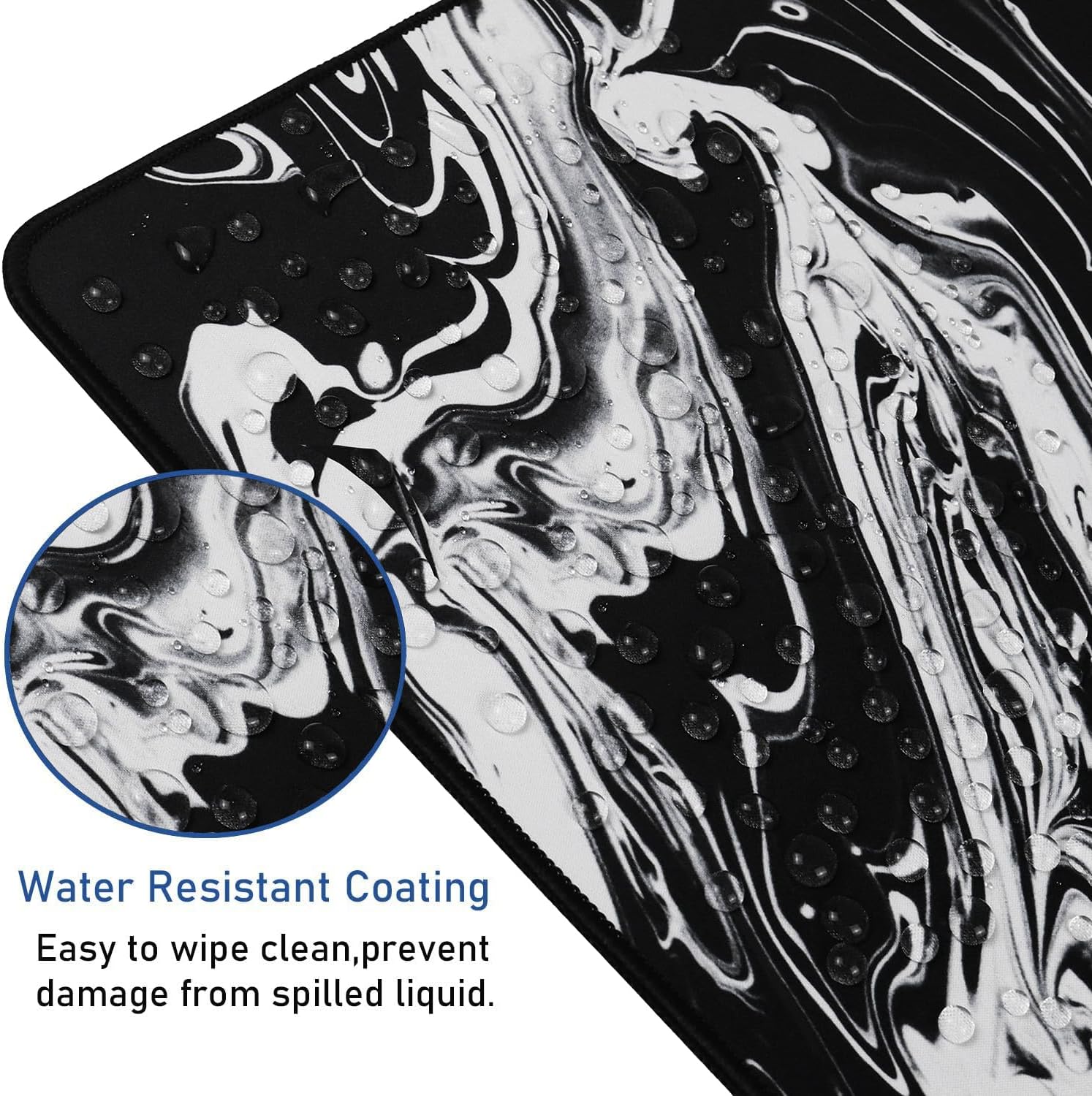 Large Extended Gaming Mouse Pad with Stitched Edges, Durable Non-Slip Natural Rubber Base, Waterproof Computer Keyboard Pad Mat for Esports Pros/Gamer/Desktop/Office/Home - Black White