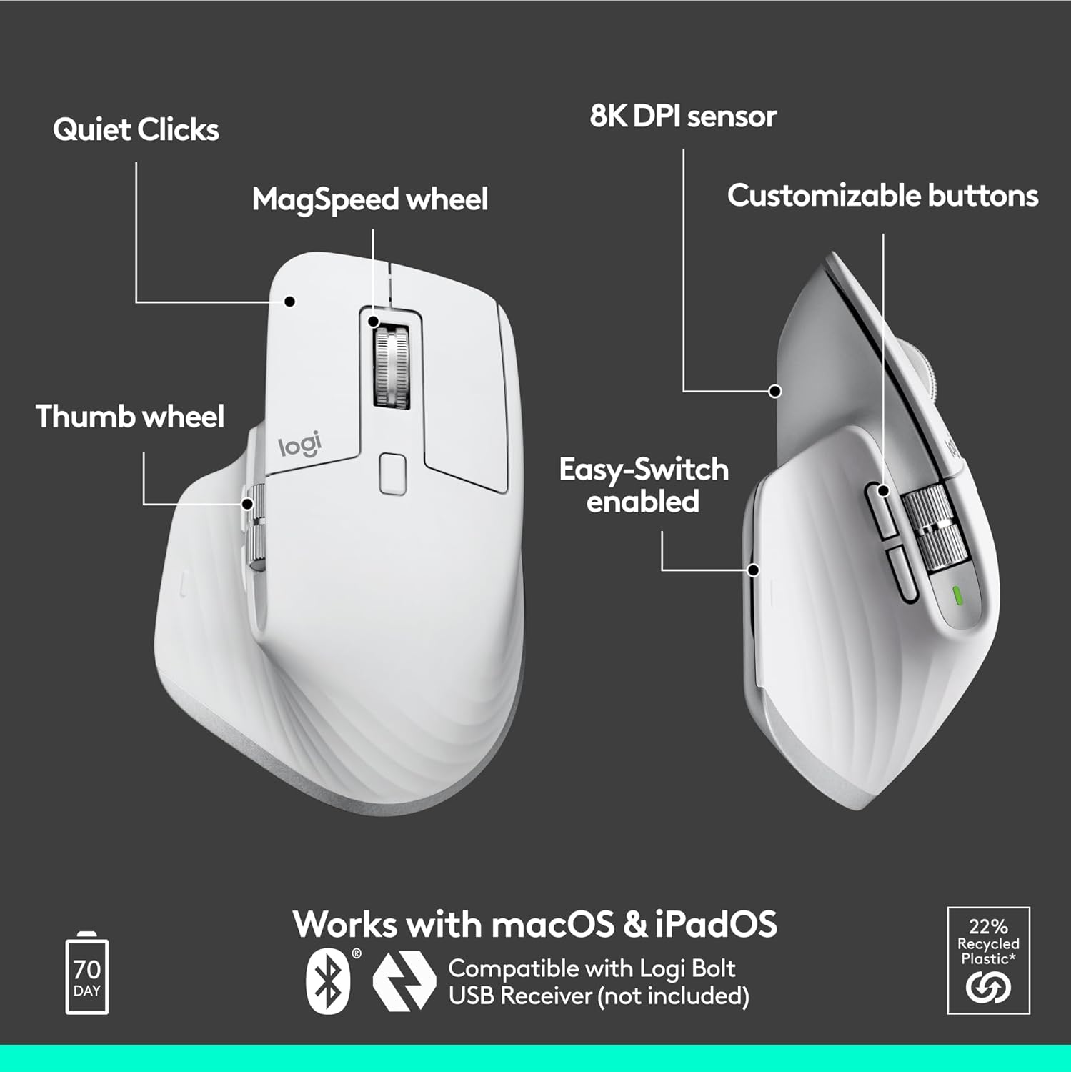 - Scroll 1000 Lines Per Second: Features MagSpeed, MX Master 3S Logitech’s fastest and most precise scroll wheel, and an 8K DPI sensor that tracks anywhere – even on glass (3)