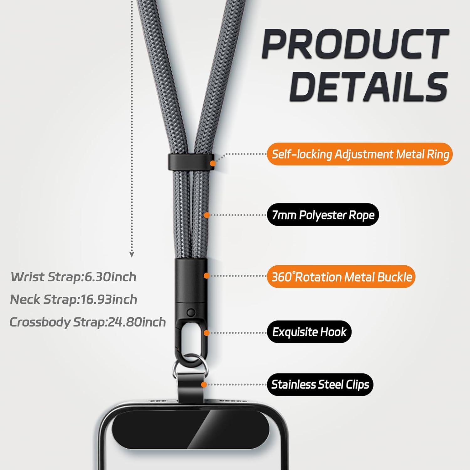 - 【Multi-Use 】This phone neck strap is not just for phones! Cameras, wallets, keys, headphones, sunglasses - you can easily hang them all.Say goodbye to bulky bags, It's lightweight yet sturdy, making it an excellent partner for your outdoor activities, hikes, and travels.