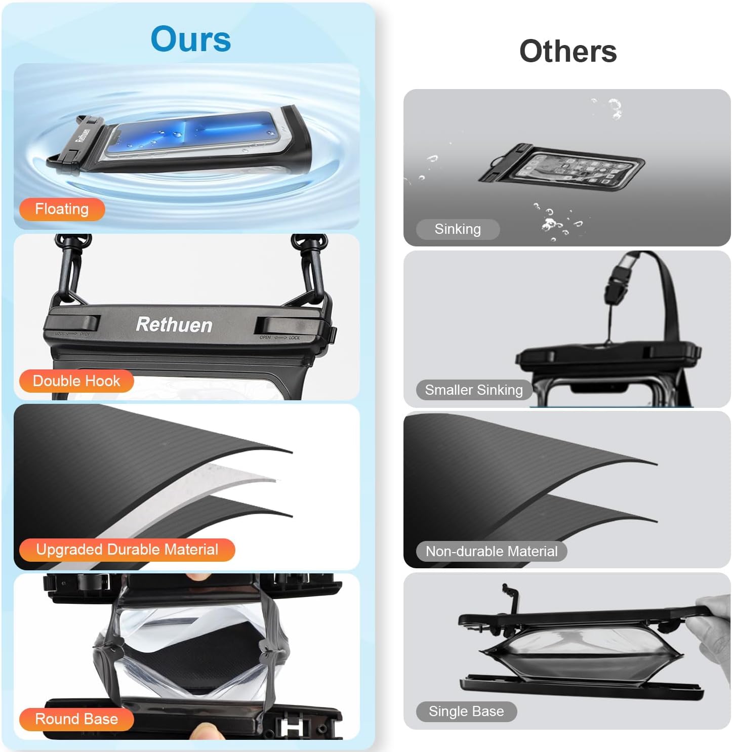 - [Floating Design]: Floating waterproof phone pouch provides up to 500g of buoyancy, even when loaded with 1 cell phone and other more carry-on items, it still floats on the water, perfect for outdoor activities/travel scenarios such as surfing, swimming, kayaking, boating, etc