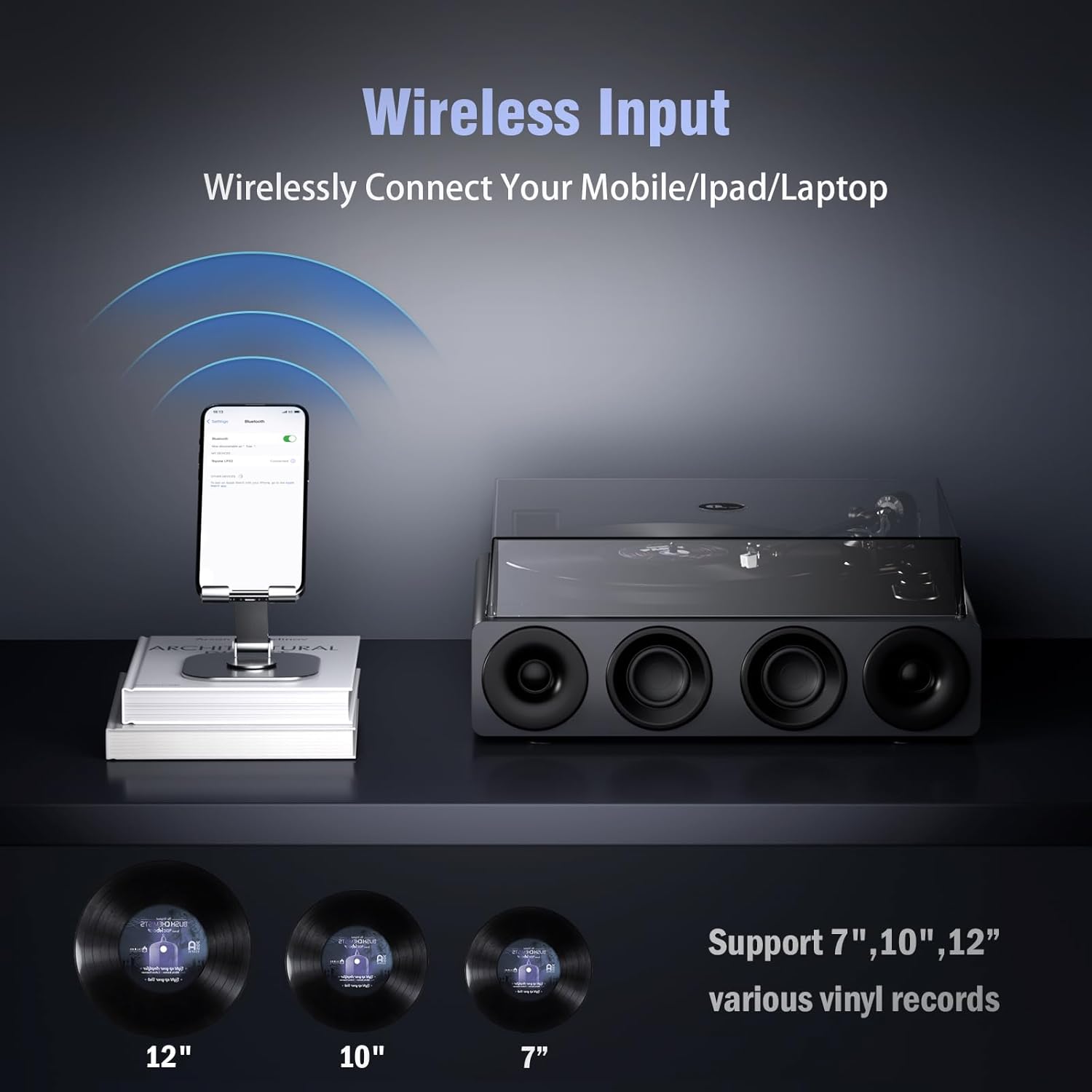 - Wireless Record Player: This record player’s wireless input capability allows you to wirelessly stream music from your smartphone, tablet, or other wireless-enabled devices, giving you the flexibility to enjoy your digital playlists as well as your vinyl
