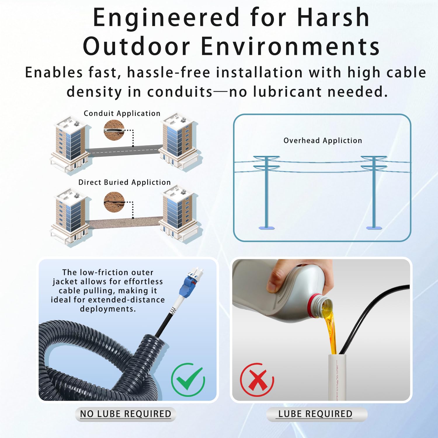 - Special Feature : Heat and UV-Resistant, Low-Friction LSZH Jacket, Outdoor Armored Construction, Uniboot LC-LC Design, Weatherproof Heat and UV-Resistant, Low-Friction LSZH Jacket, Outdoor Armored Construction, Uniboot LC-LC Design, Weatherproof
