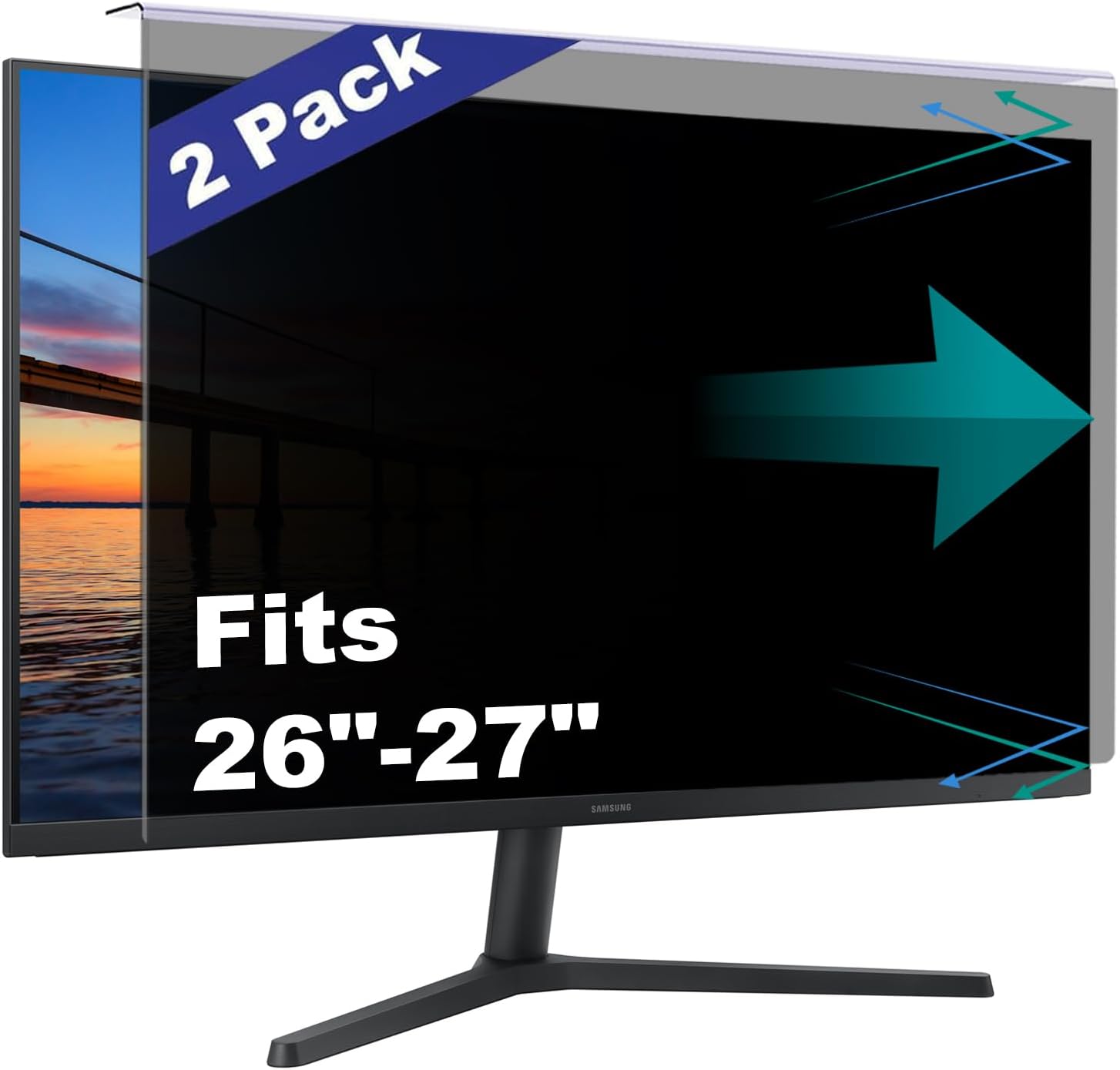 - 【 Privacy Filter Dimensions 】- Privacy Screen Fits 27 inch to 27 inch, 26"-27" widescreen monitors with a 16:9 or 16:10 aspect ratio. Actual Filter Size: Width: 21 1/2" (547mm), Height: 13 3/5" inches (320mm). Compatible with HP Dell Acer Samsung LG ViewSonic and More. The length and width may not be a perfect fit, so the filter may be a little longer and wider.