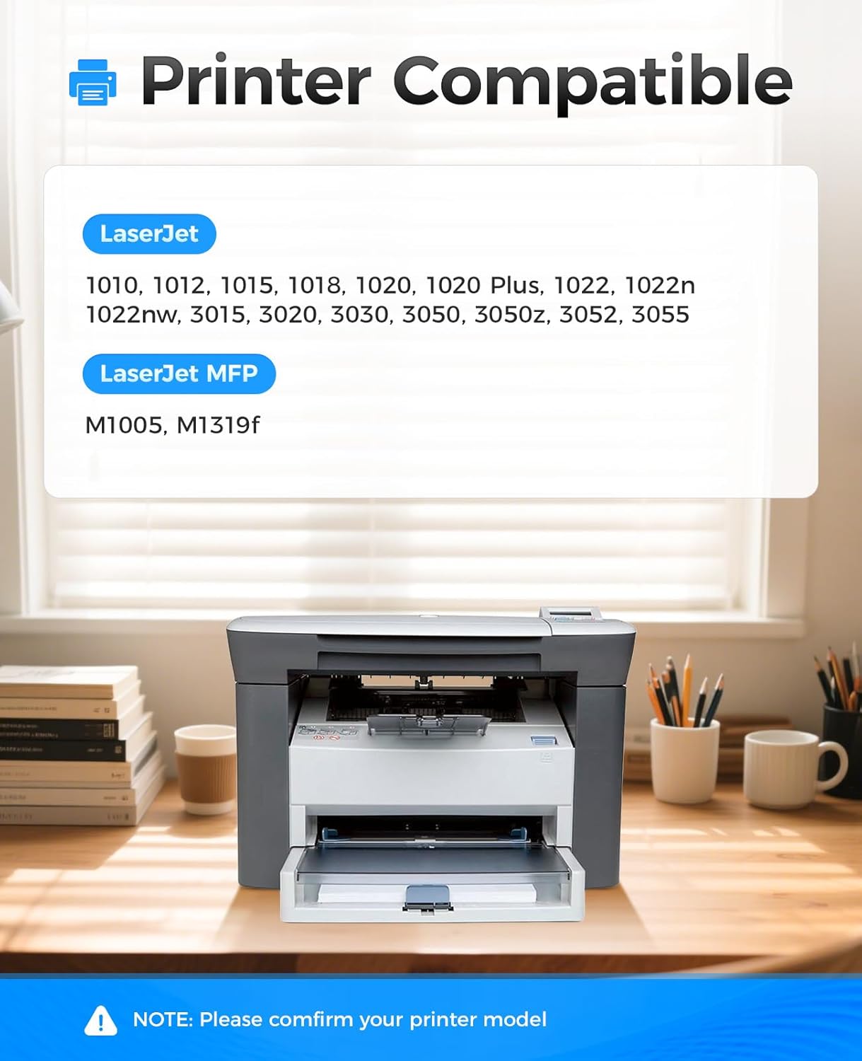 - Compatible Devices : Compatible with LaserJet 1010,1012,1015,1018,1020,1020 Plus,1022,1022n,1022nw,3015,3020,3030,3050,3050z,3052,3055 LaserJet MFP M1005,M1319f Series Printer. Compatible with LaserJet 1010,1012,1015,1018,1020,1020 Plus,1022,1022n,1022nw,3015,3020,3030,3050,3050z,3052,3055 LaserJet MFP M1005,M1319f Series Printer.