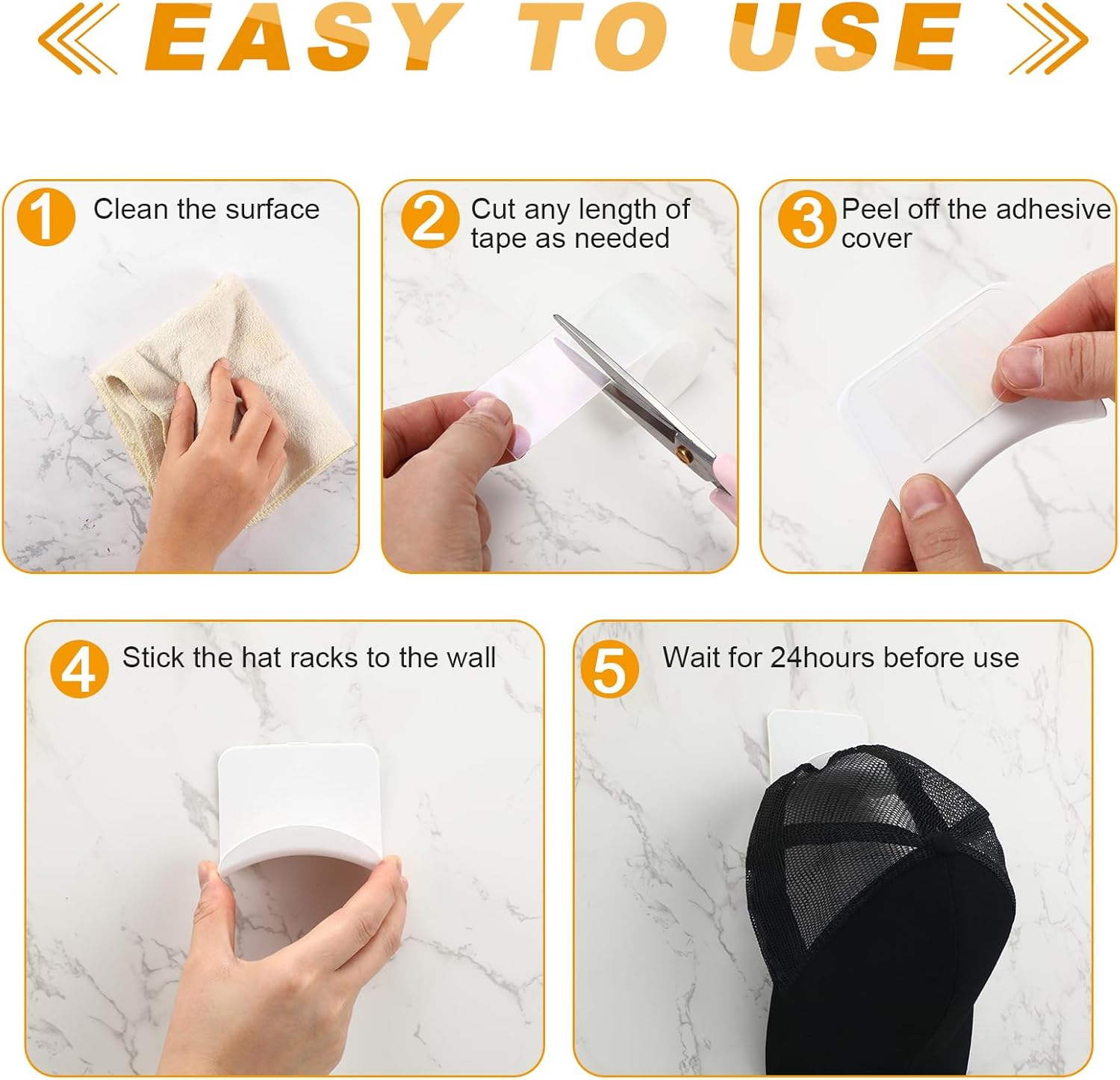 - Applicable to Multiple Scenes: these wall mount hooks can be attached anywhere, you can stick it on the wall, desktop, table leg, cabinet, window sill, etc. These hooks are suitable for bedrooms, dormitories, offices, clothing stores, headphone stores and so on