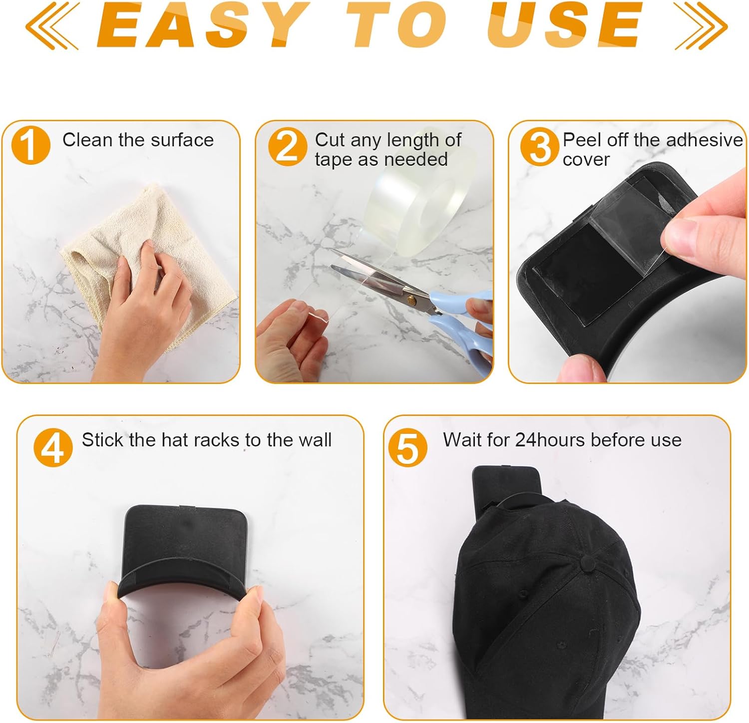 - Applicable to Multiple Scenes: these wall mount hooks can be attached anywhere, you can stick it on the wall, desktop, table leg, cabinet, window sill, etc. These hooks are suitable for bedrooms, dormitories, offices, clothing stores, headphone stores and so on