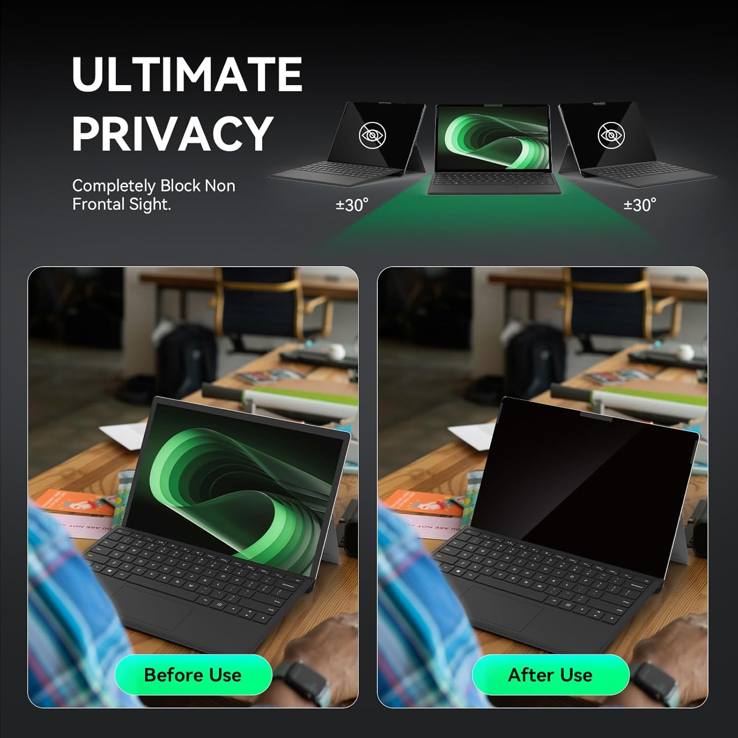 - 【Wide Compatibility】- Privacy screen filter modeled in accordance with the real screen size 1:1 restoration for Microsoft Surface Pro 11/10/9/8/X-13 inch is perfectly compatible with Microsoft Surface pro 11 -13 inch 2024 Release/Microsoft Surface Pro 10 -13 inch 2024 Release/ Surface Pro 9 -13 inch 2-in-1 Tablet & Laptop 2022 Release/ Surface Pro 8 -13 inch Touch-Screen 2021 Release /Surface Pro X - 13 inch Touch-Screen 2019 Release.