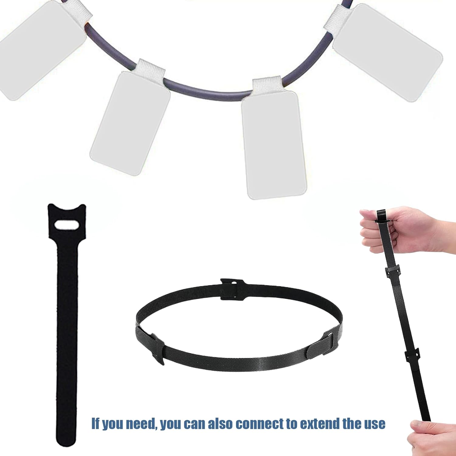 - Visual ID System - Matte white labels with ink-lock fabric surface resist smudging for legible marker writing. Black straps feature non-slip textured grip to securely hold cables in place