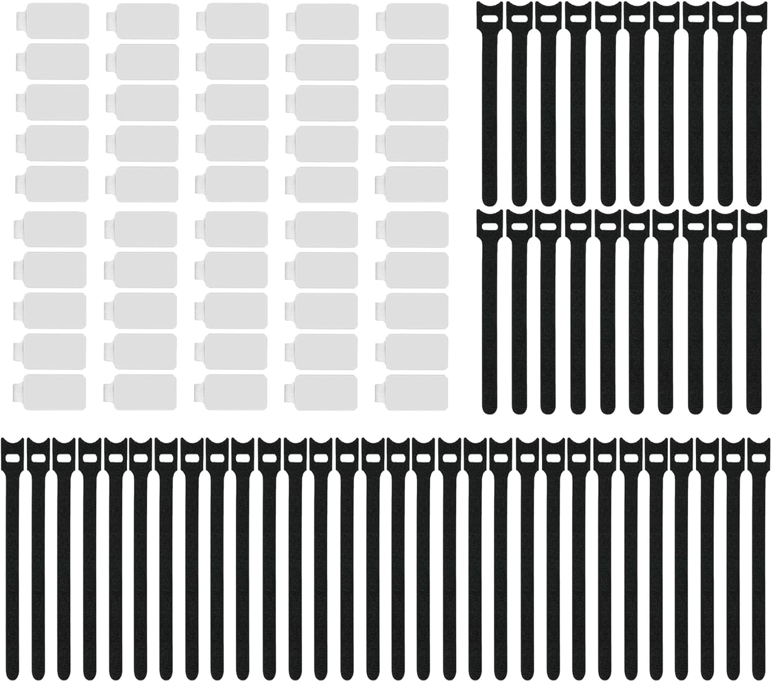 100 Pack Reusable Hook & Loop Cable Ties & Labels Kit - 50 Durable Cord/Wire Tags + 50 Self-Gripping Straps for Electronics Organizing, Home Office Cord Management (White & Black)