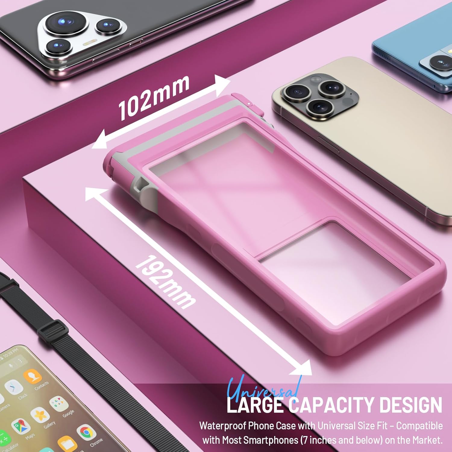 Large Floating Waterproof Phone Case with Lanyard for Snorkeling & Diving - Underwater Phone Pouch Compatible with i-Phone 16/15/14 Pro Max, Galaxy All Series, Beach and Pool Water Park (Pink)