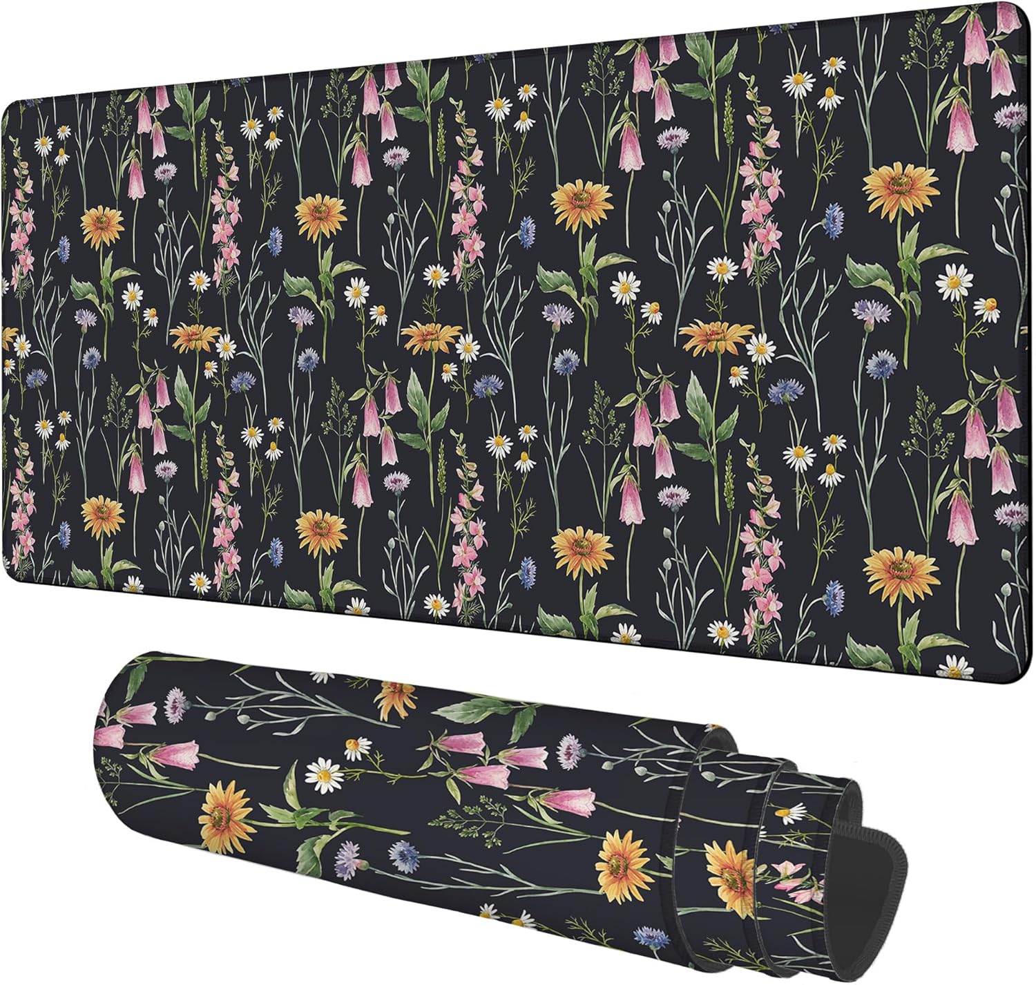Large Mouse Pad Field Flowers Gaming Desk Pad Computer Keyboard Non-Slip Waterproof Mouse Mat with Rubber Base and Stitched Edges Entertainment Office Writing Desk Mat 35.4 x 15.7 Inches