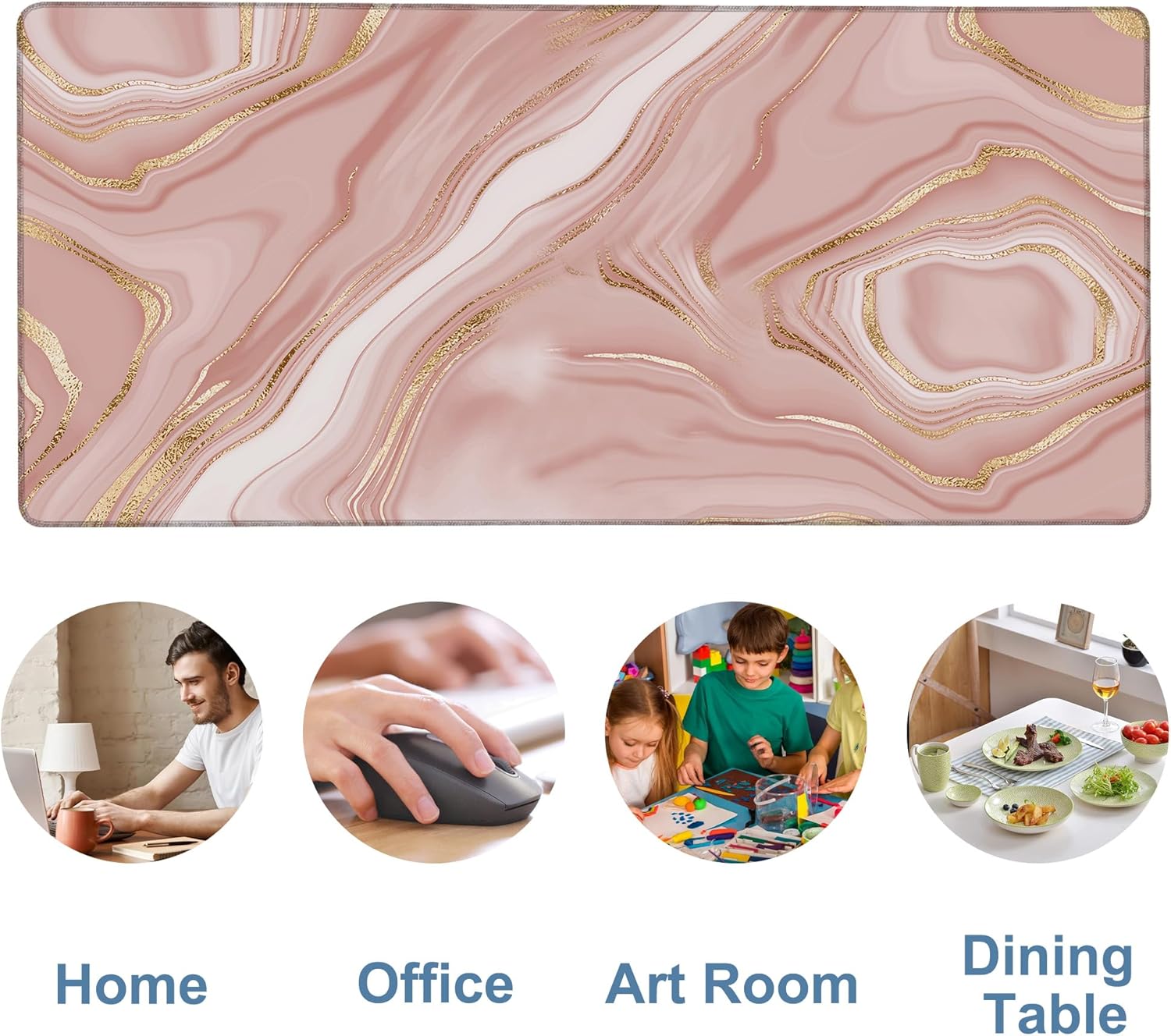 - Anti-slip Base:The base of the desk pad is made of natural rubber material and a dense grid design,which greatly enhances the bottom friction,allowing the mouse mat to be firmly fixed on the desktop to prevent sliding,making office and entertainment smoother,and suitable for desktops of various materials