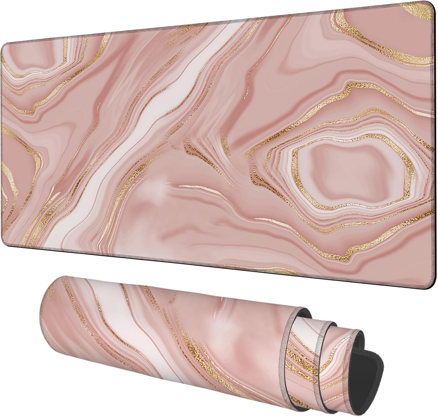 Liquid Marble Gaming Mouse Pad 3mm Thick Stitched Edge Waterproof Non-Slip Large Computer Keyboard Mouse Mat,Suitable for Office Entertainment Decorative Desk Pad 35.4 x 15.7 Inches