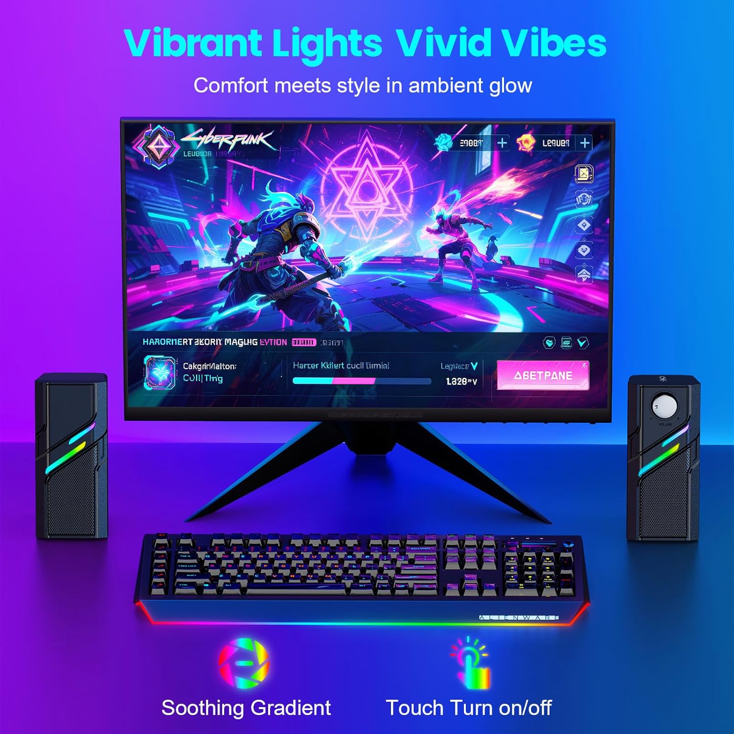 - Touch Control Lights: Tap the top of the PC speakers to turn lights on or off instantly. Soft, flowing lighting enhances your setup with a relaxed glow or dynamic gaming atmosphere.