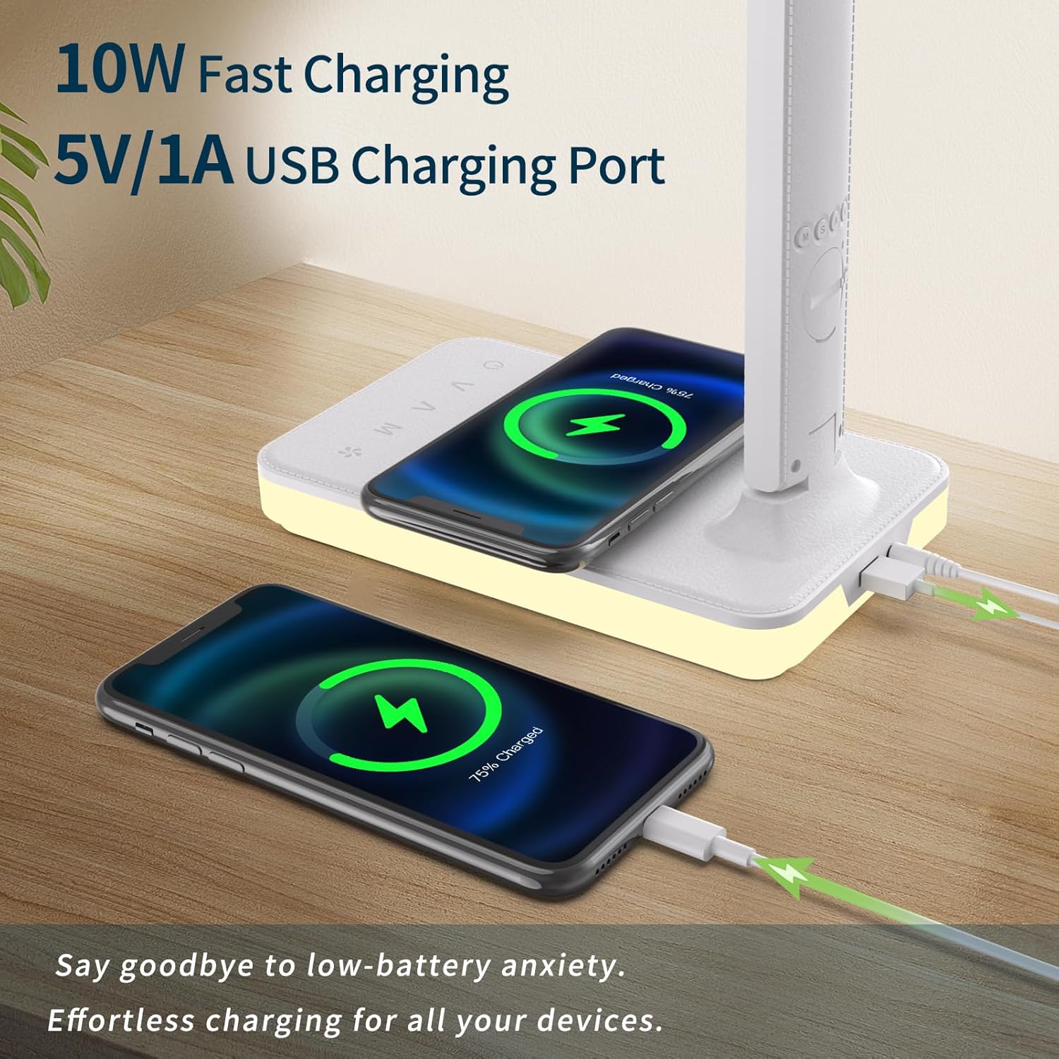 - Multiple Charging Functions: The office lamp owning both USB charging port (5V/1A) and 10W fast charging, which means you can charge two devices and use the lamp to work at the same time(5V/2A adapter included ). The charging function is not affected by the table lamp switch.