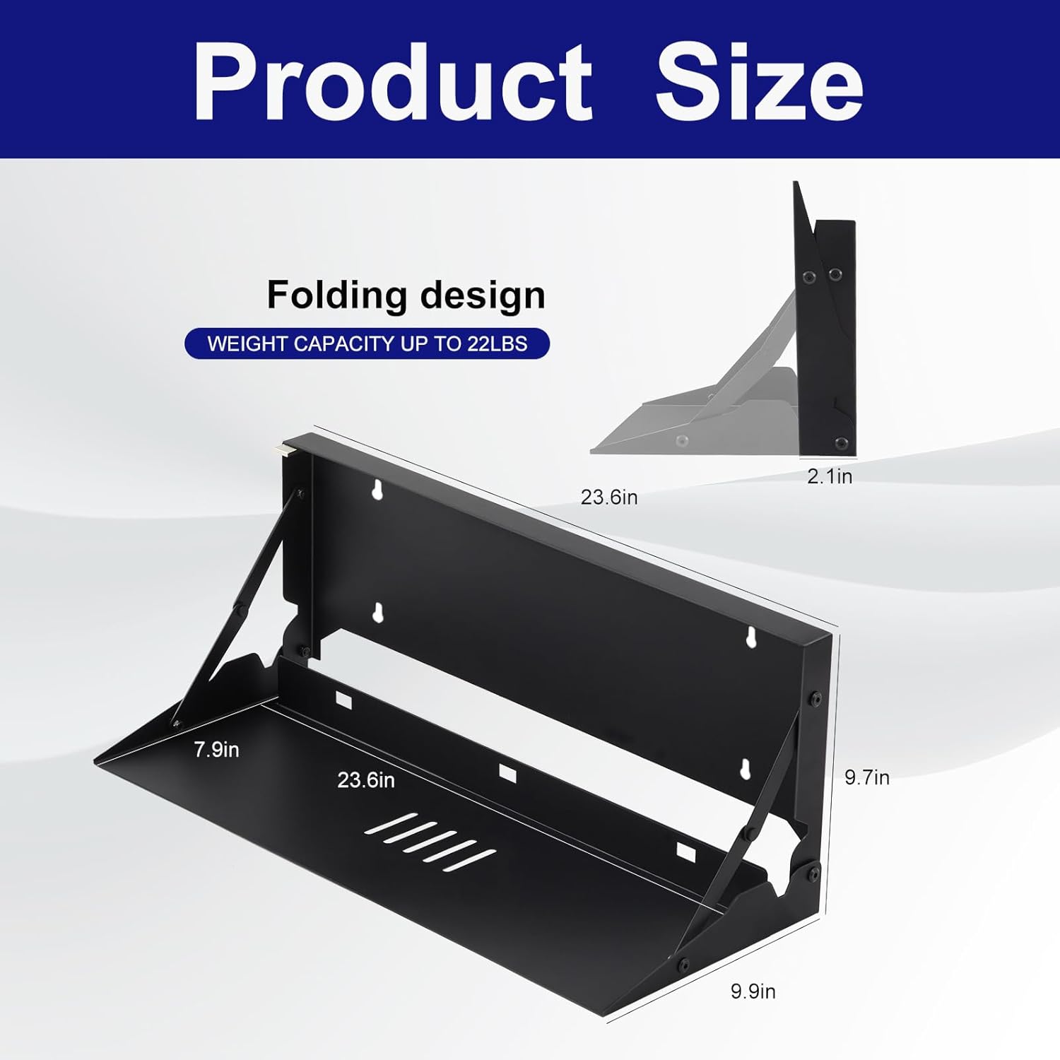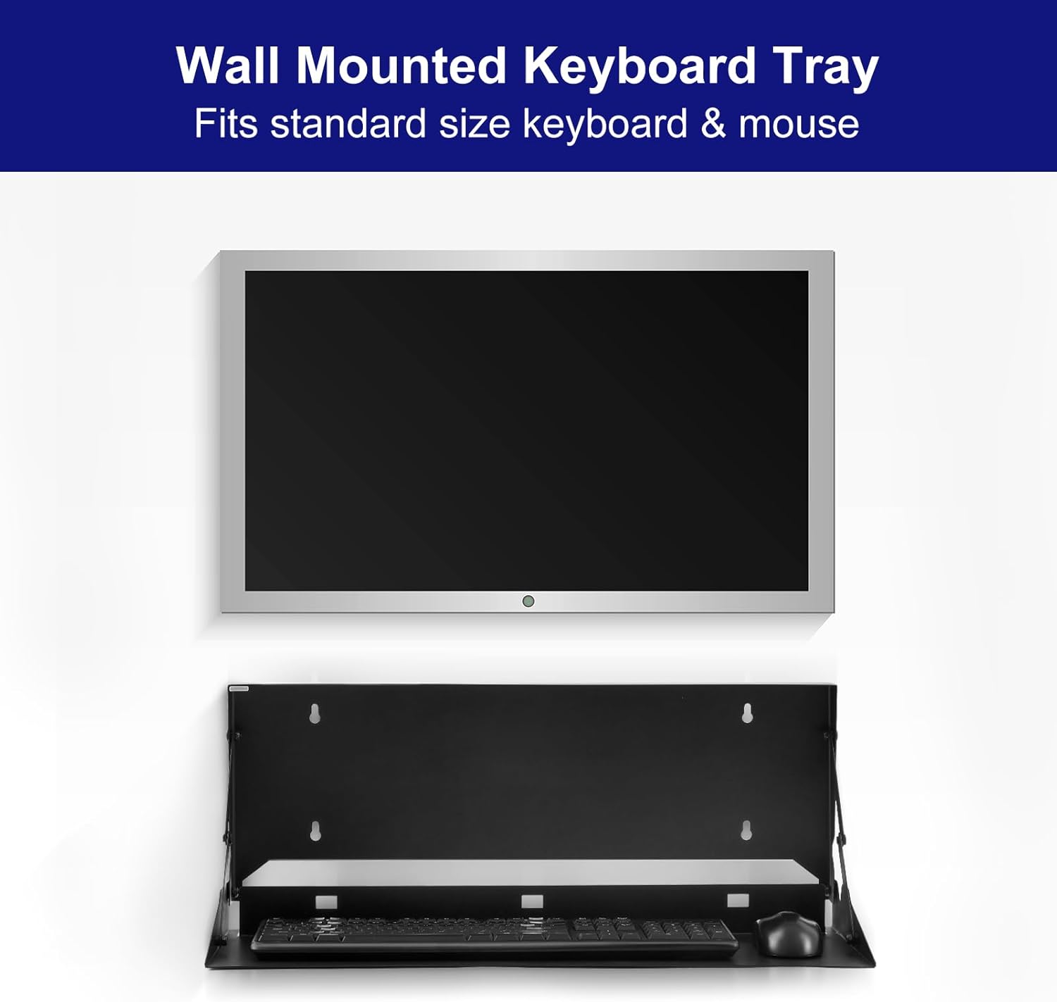 1 Pcs 24 Inch Keyboard Wall Mount Foldable Fits Standard Computer Keyboard Mouse Stand Tray Organizer for Small Offices Apartments, Easy Installation with 4 Screws (Black)