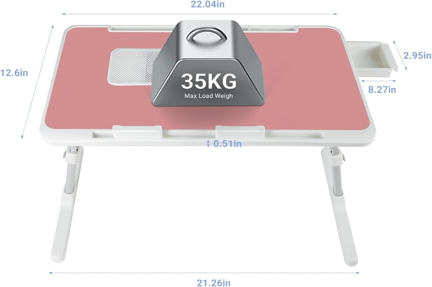 Laptop Lap Desk Include Cooling Fan,Adjustable Lap Desk with Light Fan,Folding Laptop Desk for Bed with USB,Bed Desk with Storage Drawer 56x32cm,Pink