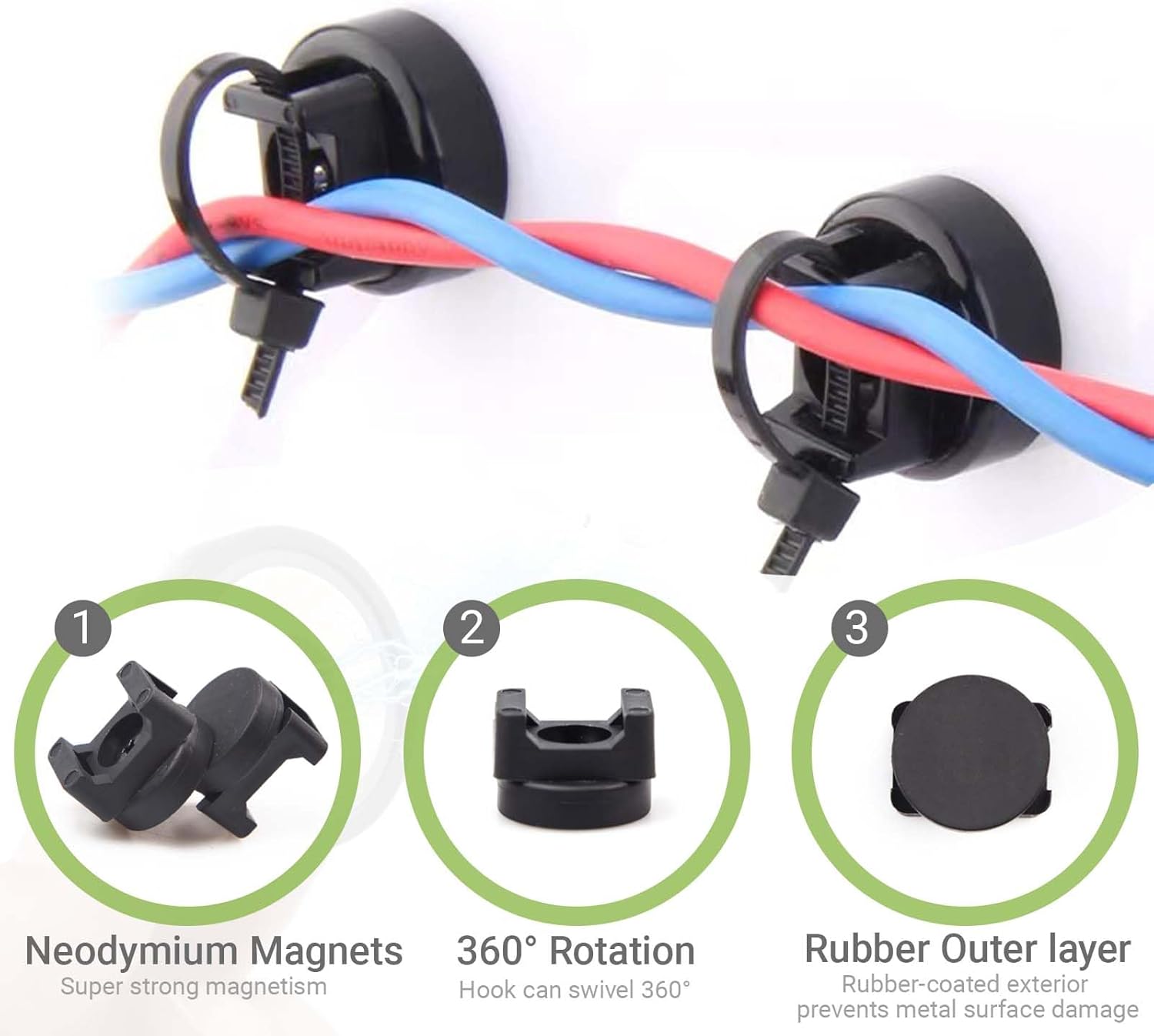 - Multifunctional Fixed Tool: 150mm cable ties are suitable for various types of wires, network cables, water pipes, and metal fittings. The magnetic base provides vertical/parallel multi angle fixation, and cable dense areas can still be accurately separated. It can replace traditional cable ties and screw combinations. A multifunctional fixing tool that combines magnetic adsorption and tie function, suitable for fixing cables, tying wire harnesses, and even hanging small tools or parts.