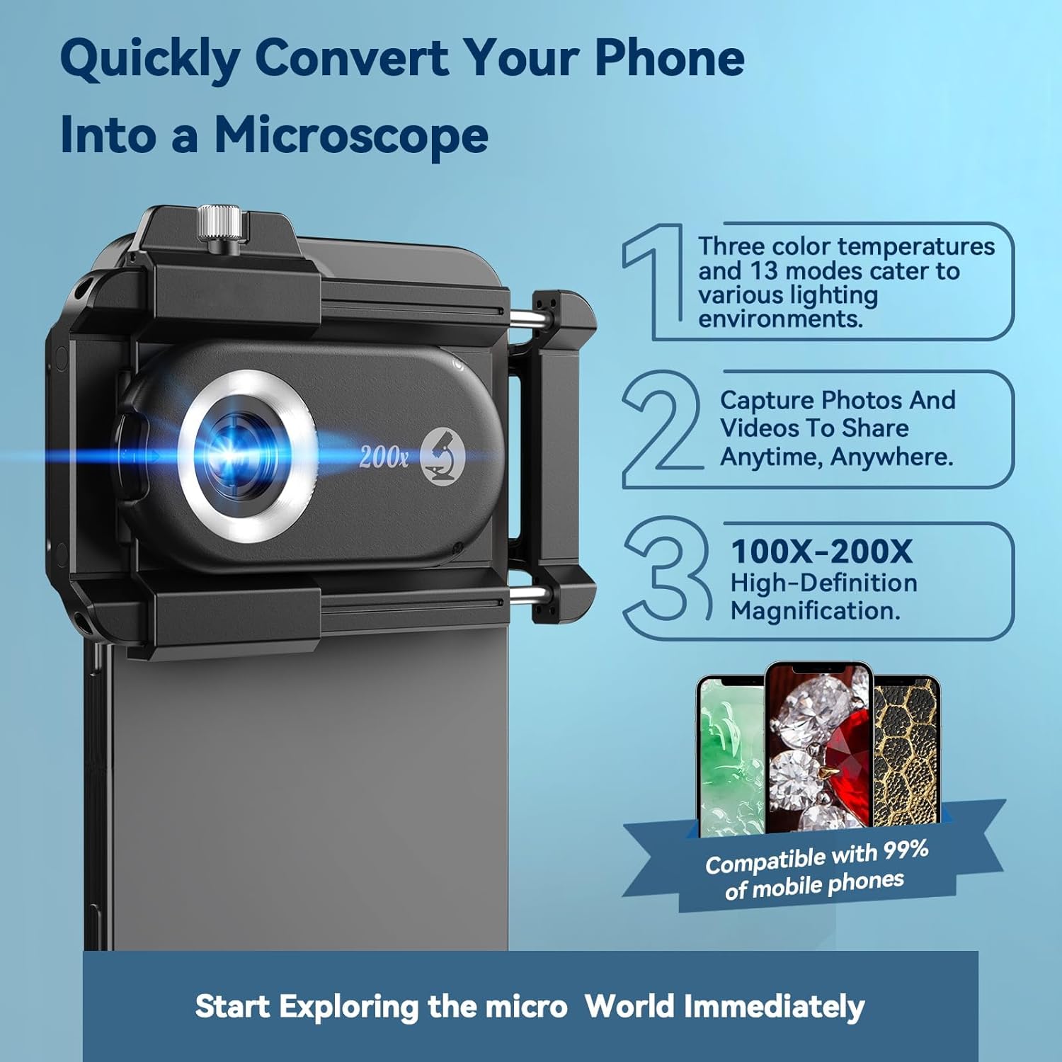 - 【No App Needed】 Unlike other digital microscopes, our phone microscope does not require any app to function. Just clip it onto your phone, and a whole new micro world will be revealed within minutes.