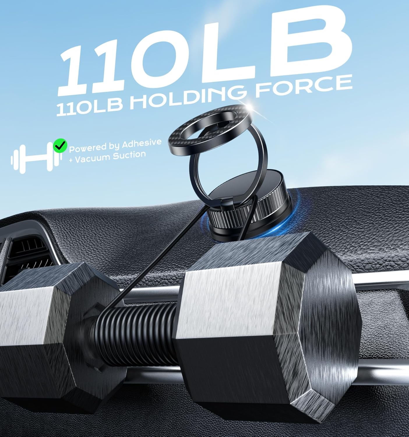 - 2025 UPGRADED SUCTION POWER – 110 LBS GRIP - Engineered for maximum holding force, this vacuum magnetic phone holder can support up to 110 lbs. Perfect for bumpy roads, hard braking, or hot and cold weather, this suction phone mount maintains a rock-solid grip. Designed for longevity and tested for durability over thousands of installations.