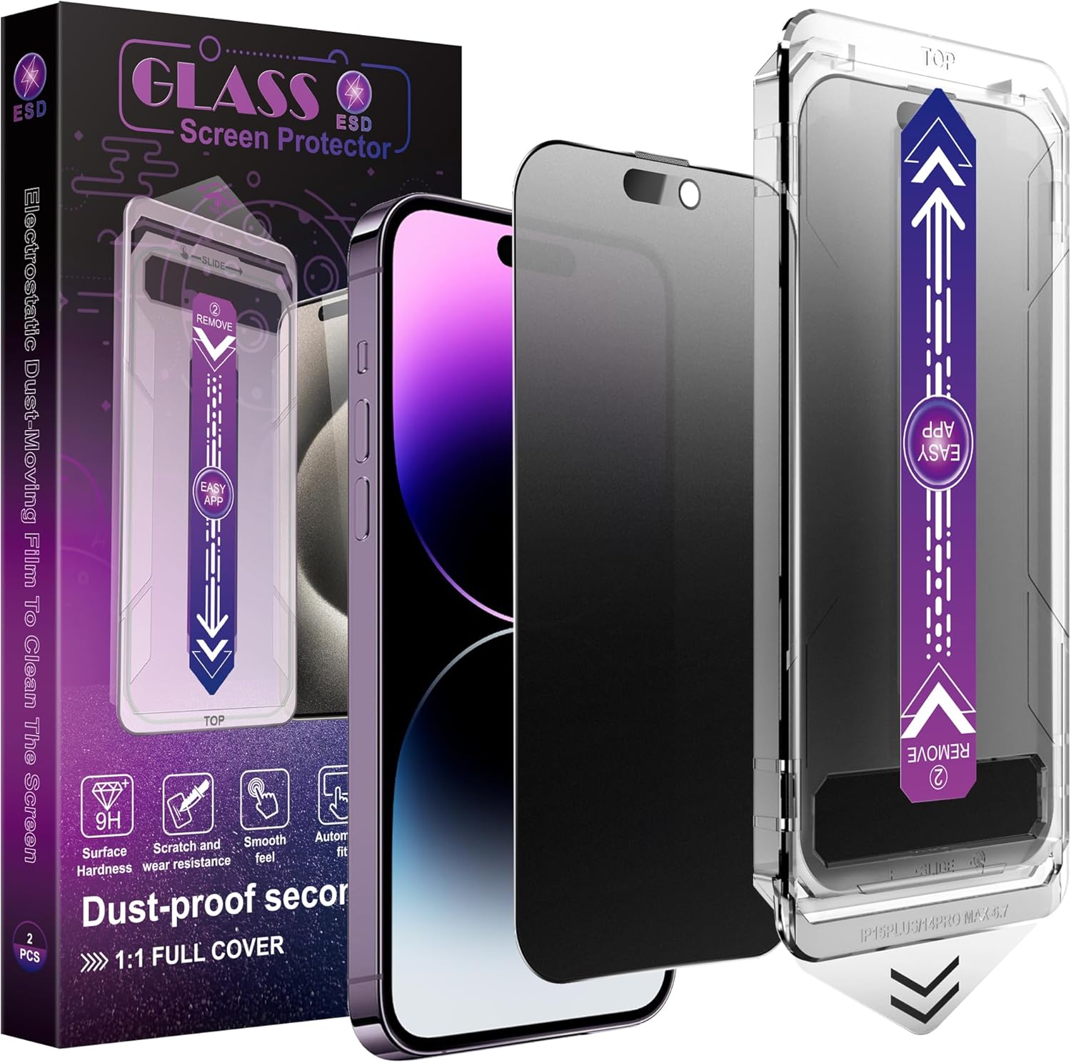 - Auto Dust Removal & Easy Alignment: This iPhone 14 Pro Max/iPhone 15 Plus/iPhone 16 Plus screen protector is designed with advanced auto dust removal and self-aligning technology to ensure a flawless,bubble-free installation every time. Simply place the alignment frame on your phone,pull the tab gently,then press and slide to push out any remaining air. The process is quick and hassle-free. For the best results,we recommend watching our step-by-step installation video before getting started
