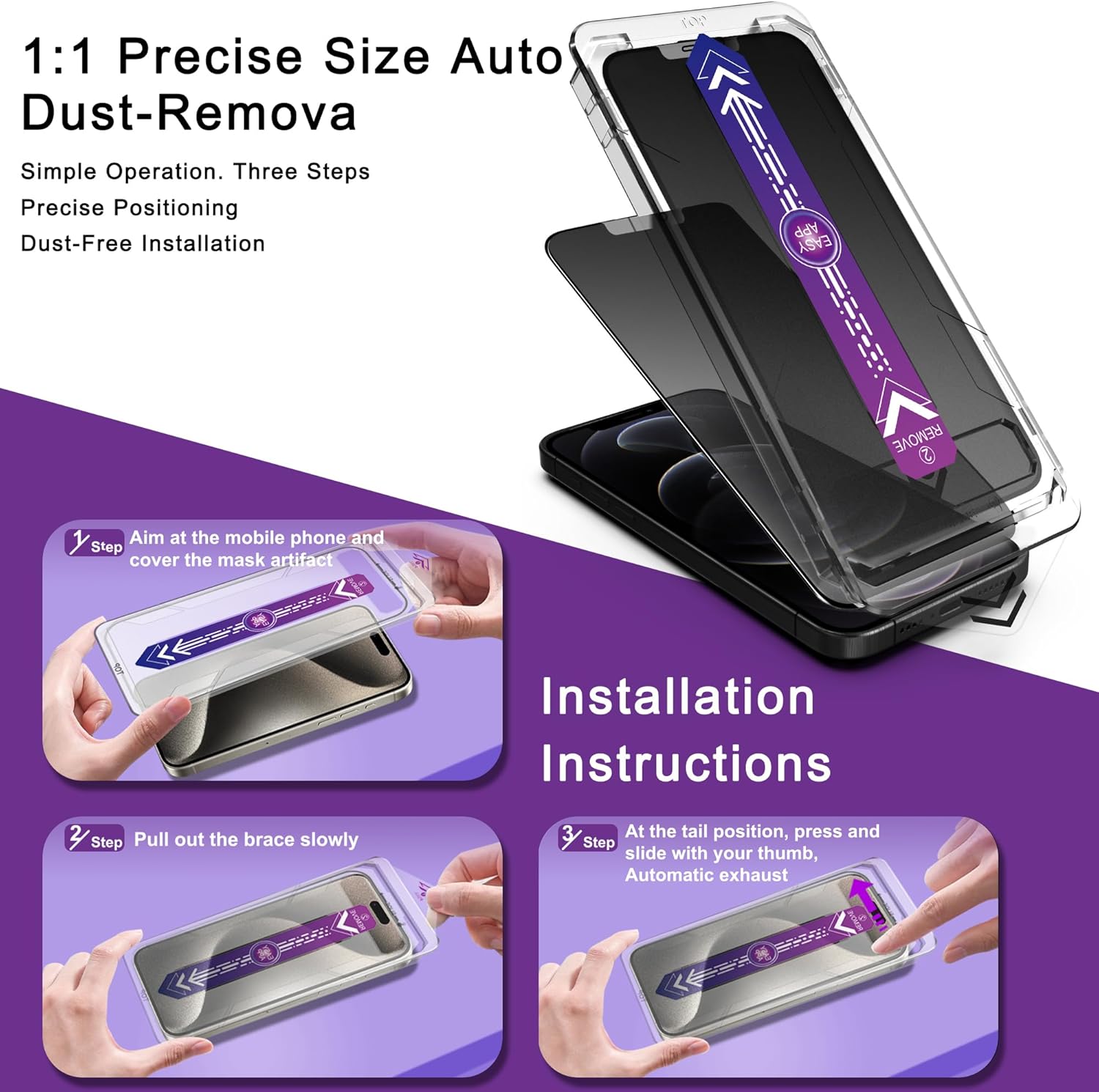 - Auto Dust Removal & Easy Alignment: ThisiPhone 12 Pro/iPhone 12 screen protector is designed with advanced auto dust removal and self-aligning technology to ensure a flawless,bubble-free installation every time. Simply place the alignment frame on your phone,pull the tab gently,then press and slide to push out any remaining air. The process is quick and hassle-free. For the best results,we recommend watching our step-by-step installation video before getting started