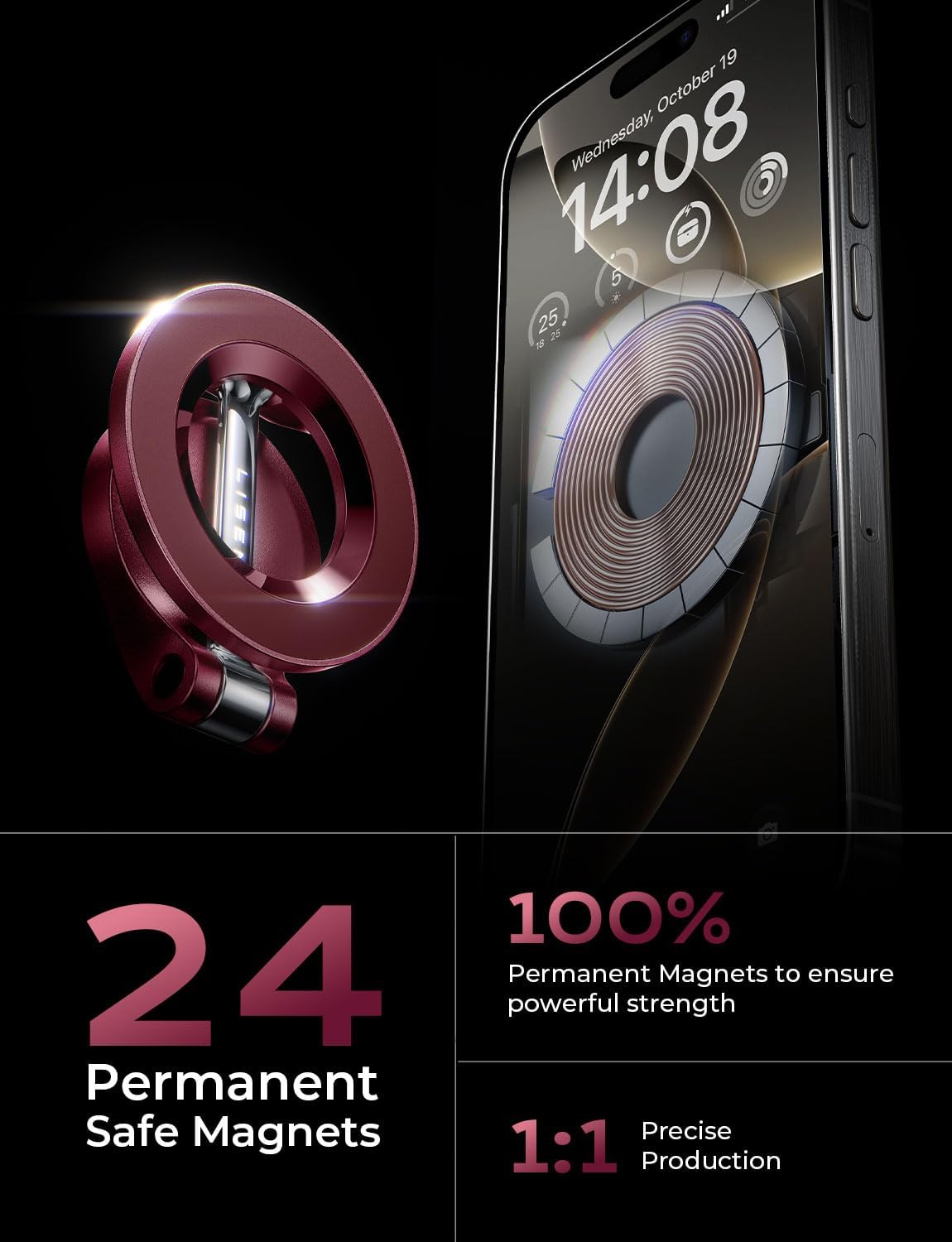 - MORE STABLE, MORE DURABLE: LISEN has upgraded this magsafe car dash mount from 3 directions; ①Upgrade Multi-adjustment to help you find the best car mount location; ②Cell phone holder for car mount with most durable design; ③Magnetic phone car mount that has the strongest magnet force, which can hold up to 12 iPhone 15 Pro Max. LISEN provides at least 1 years of user service.