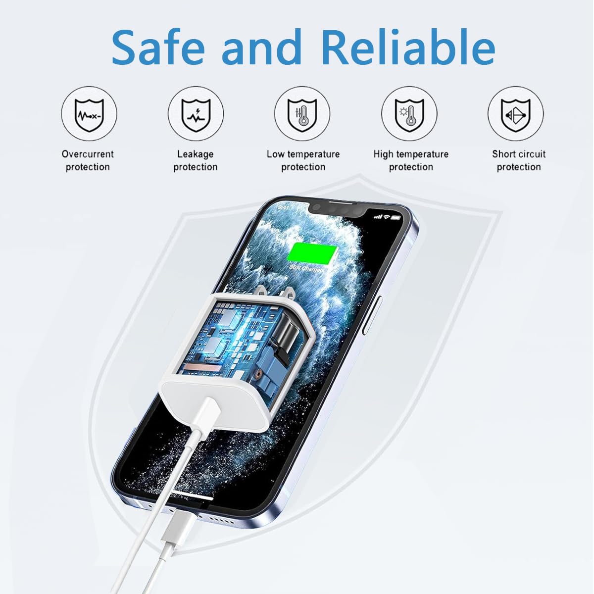 - [Safety Efficient Fast Charging]The iPhone charger USB C charger block is equipped with multiple protection systems to prevent overvoltage, overcharging, overheating, and other issues. The intelligent chip, including MFi certified lightning cable, automatically matches the current required by Apple devices to quickly, safely, and stably charge your iPhone/iPad devices