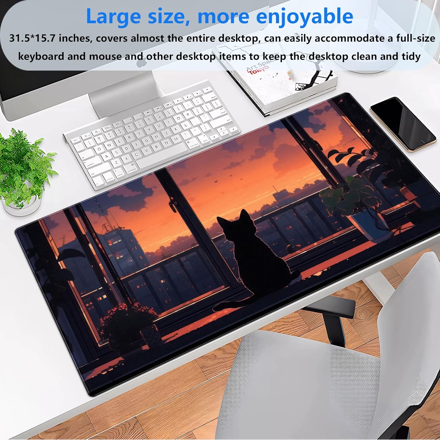 - 【Extended Large Size】 Measures 31.5 x 15.7 x 0.12 inches, this full desk mousepad accommodates a mouse, a full-size mechanical keyboard and other desk items, Its extended size also doubles as a desk pad or platform protection mat, keeping your desk clean and organized.