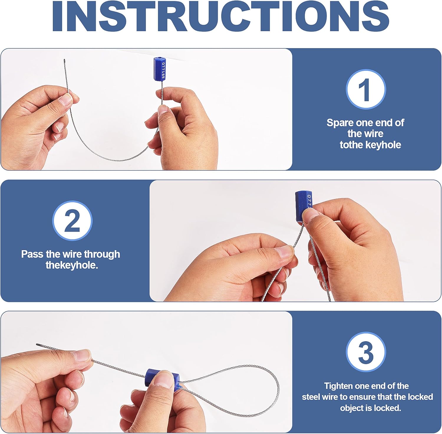 - 【Sufficient quantity】: The package comes with 120 steel safety cable seals, 1 wire cutter, sufficient quantity to meet your various locking use and replacement needs