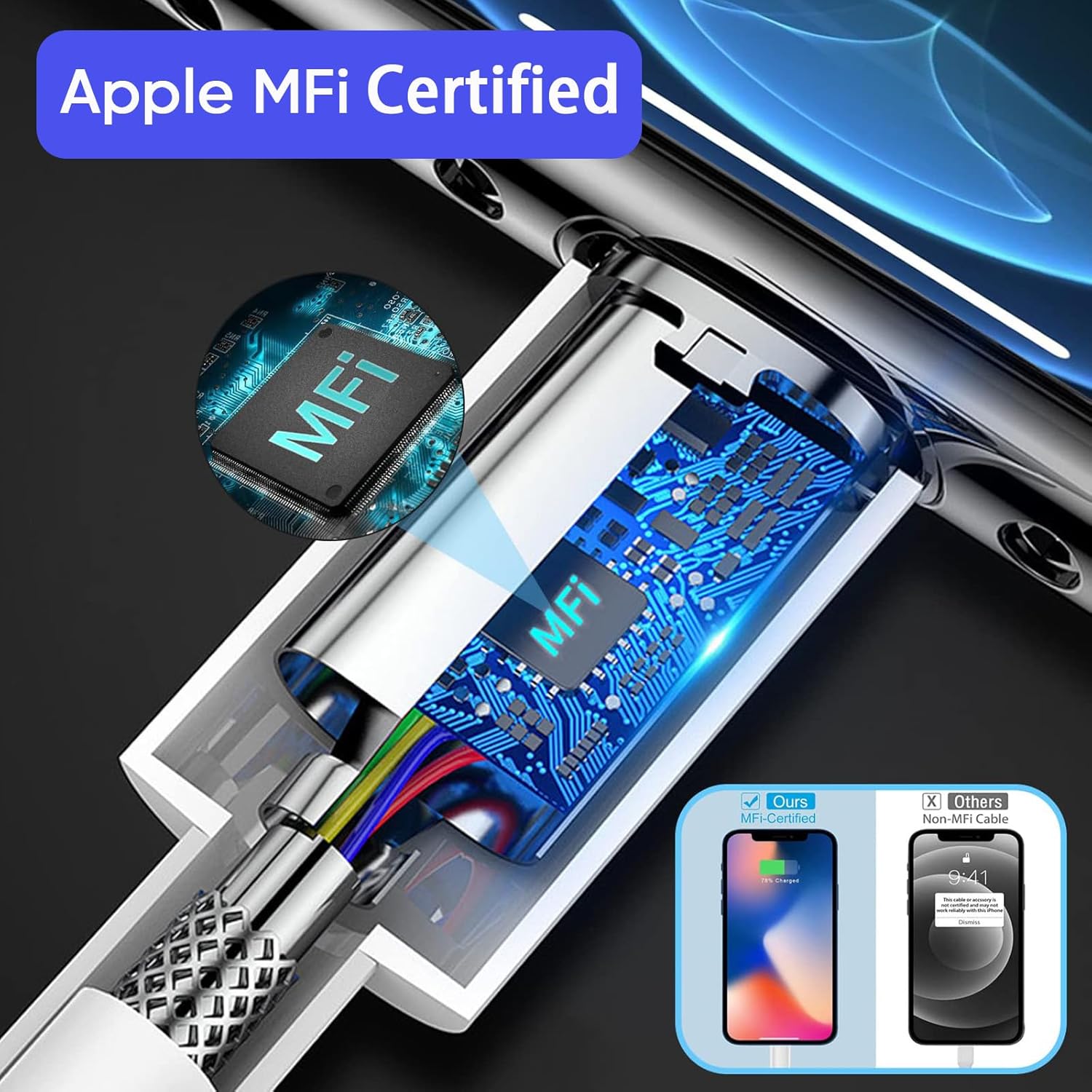 - [Fast Charger for iPhone 14 13 12] This Apple fast charging usb c adapter for iPhone features a multi-protection system, equipped with over-voltage, overcharge, overheat protection, etc. MFi certified Lightning cable iPhone charger cord automatically matches the current required by the device, ensuring safer and more stable charging speed for your digital devices