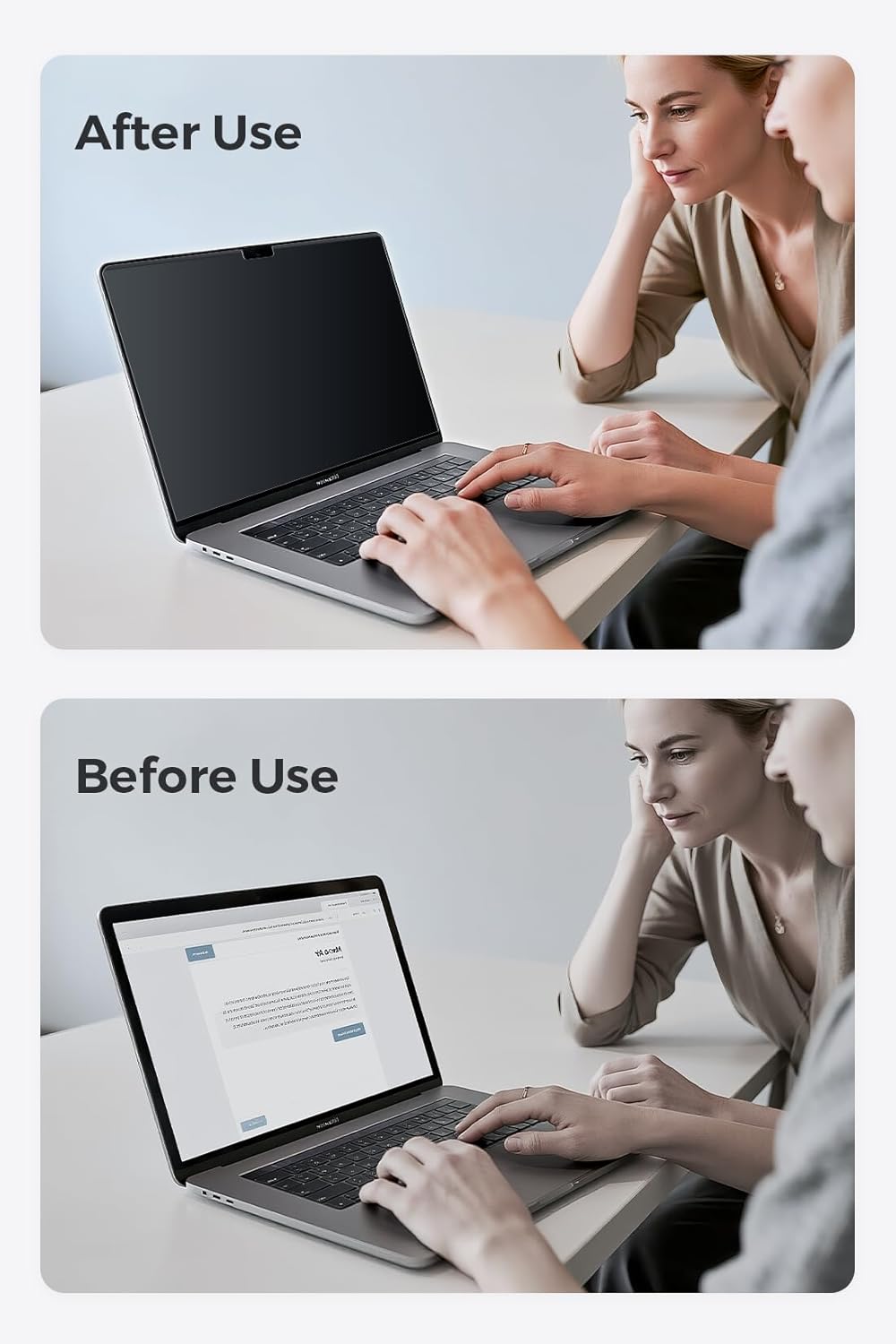 - Snap-On Magnetic Privacy for MacBook Pro 14 Inch – Instantly attach this screen protector to your MacBook’s top bezel with built-in magnets. Remove, clean, and store in the included storage holder when privacy isn’t needed—no adhesives, no residue.