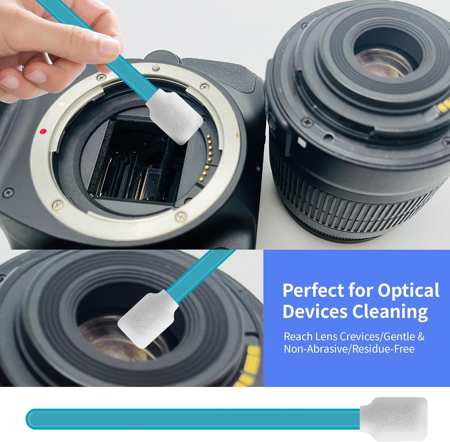 - Lens Equipment Cleaning: Dust-free foam material, no debris, no marks. Foam cleaning swabs gently wipe camera lenses, sensors, microscope lenses, and other precision optical equipment. Microfiber swabs are designed with strong adsorption power to effectively clean fingerprints, dust, and oil, keeping images clear. Suitable for professional photographers and equipment maintenance personnel.
