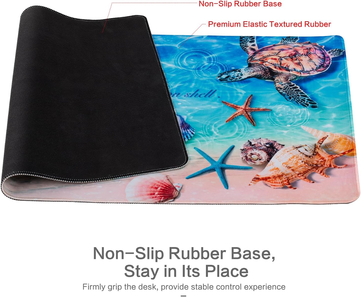 - Teal Sea Turtle Desk Pad: 31.5x15.7 inch mouse pad provides ample room to fit your gaming mouse, full-size mechanical keyboard, and other desk items, to keep your desk neat and clean. Made of heat resistant high density textured rubber which protects your desk from scratches, stains, spills and scuffs.