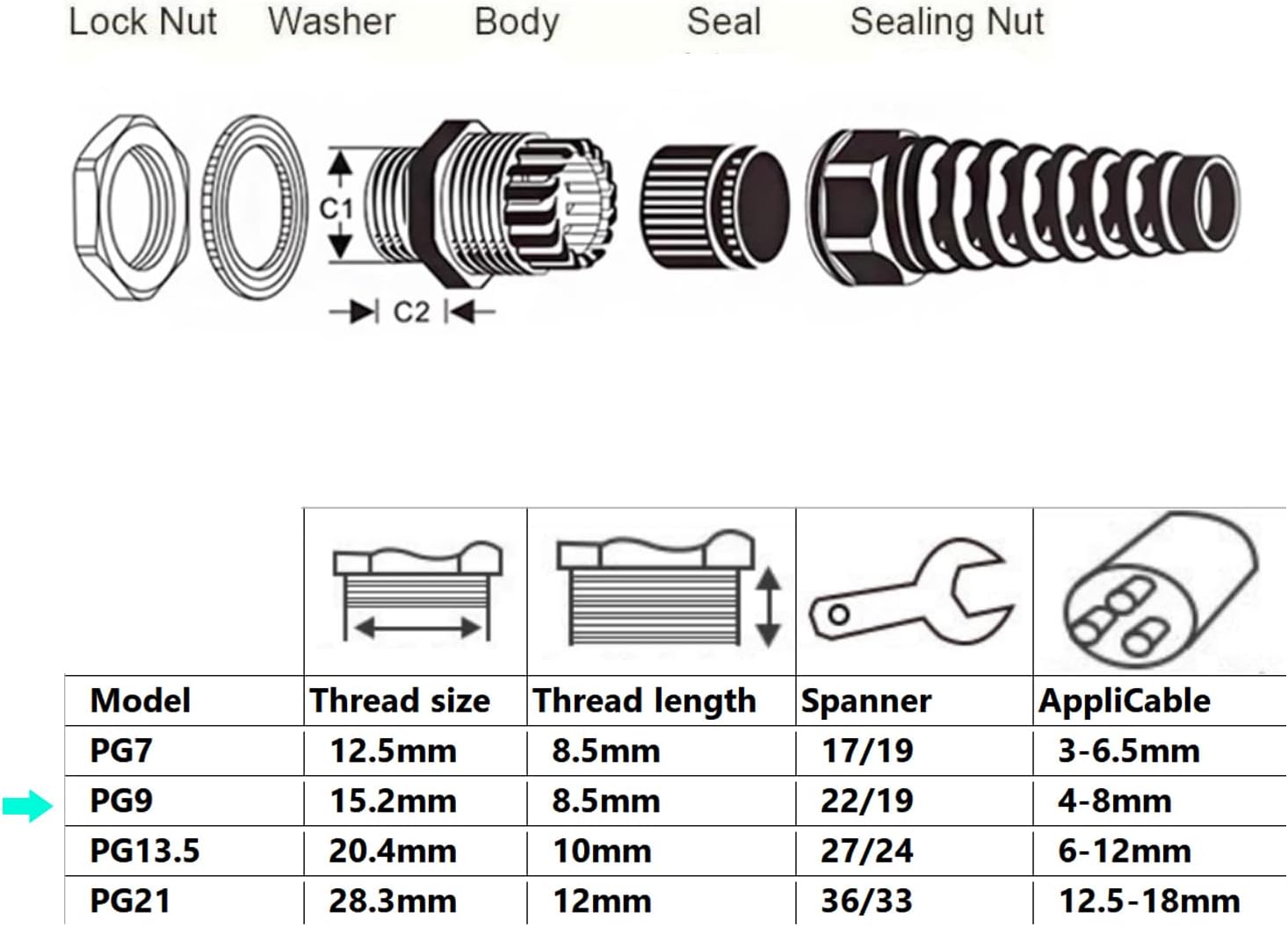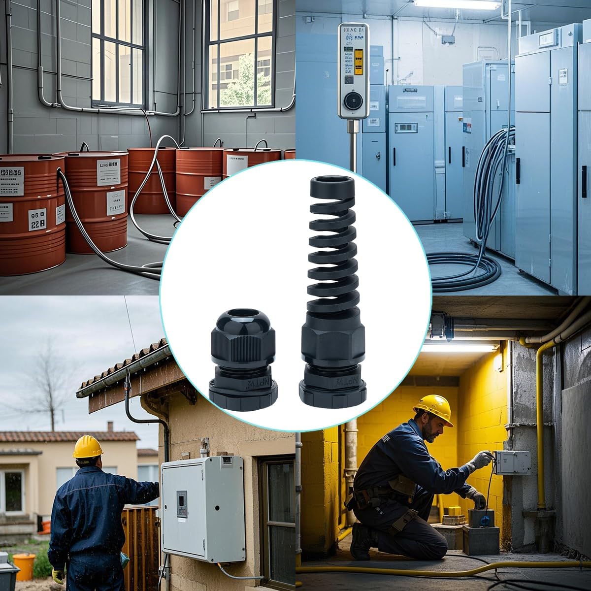 10 Pack Black Nylon Cable Gland, NPT 1/2" Thread, Made of PA66 Material, High Wear Resistance and Chemical Resistance (Black, PG21(10Pcs))