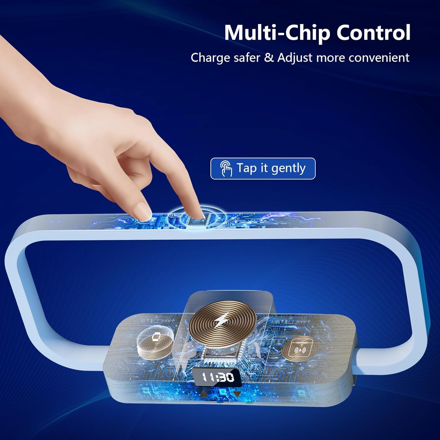 - 【3-in-1 Bedside Lamp with Wireless Charger】Designed as a Sleek and functional, this desk lamp provides ambient lighting while acting as a 3-in-1 wireless charging station for your iPhone, AirPods, and Apple Watch. Keep your nightstand tidy and organized, free from messy cables, and enjoy the convenience of charging multiple devices in one place.