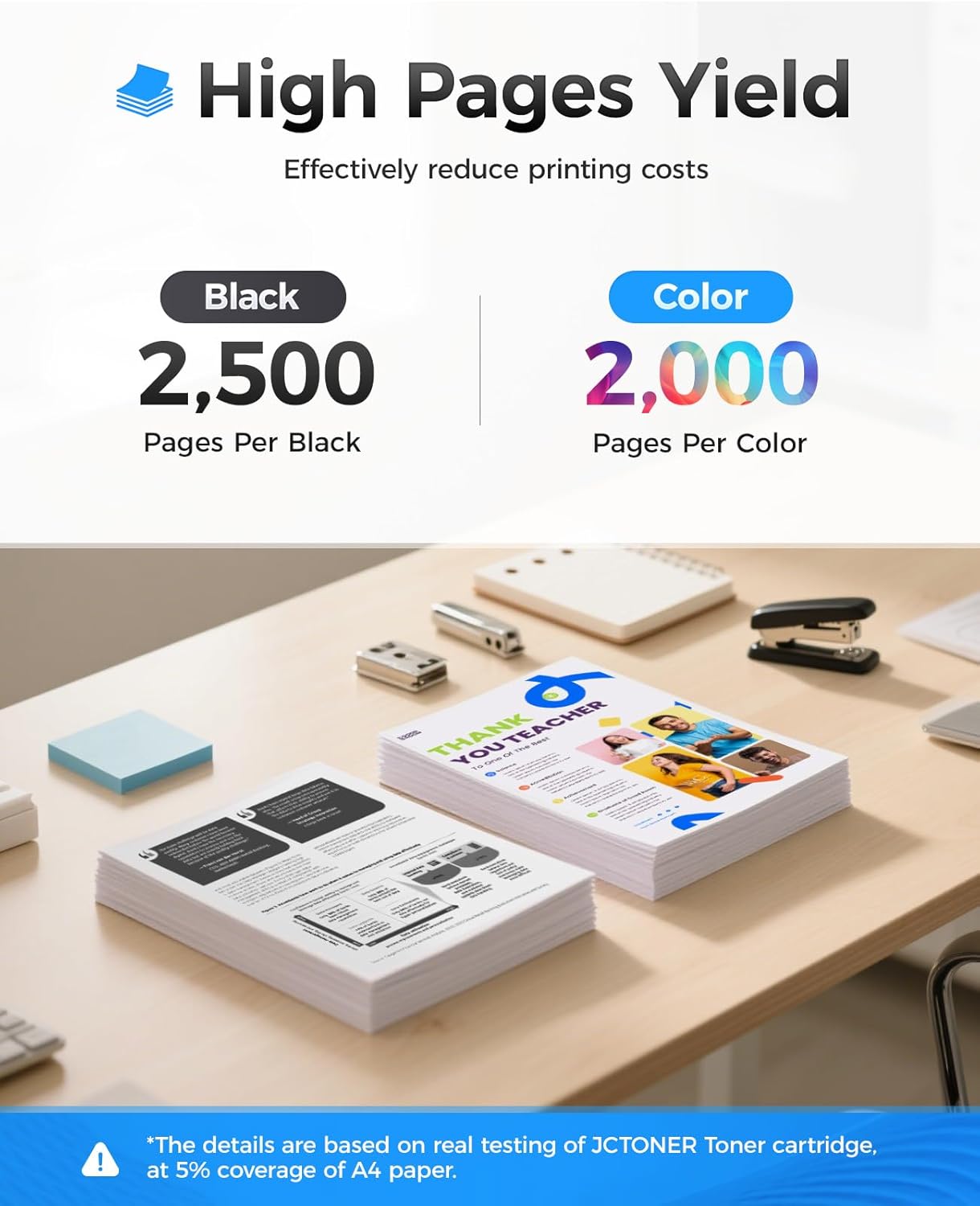 - High-Yield: up to 2,500 pages per 124A Black and 2,000 pages per 124A Color (Total 8,500 pages, 5% coverage),with High Yield Version 124A toner Cartridges.