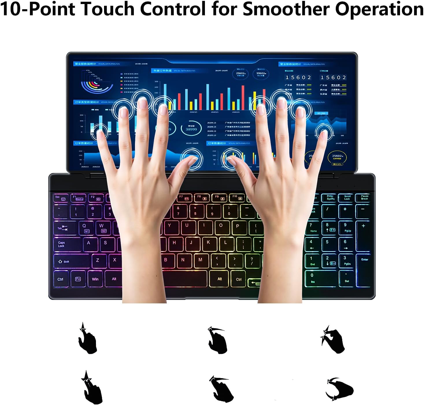 - 【Keyboard & Touchscreen in One】The 12.8-inch fully laminated glass screen seamlessly integrates with a scissor-switch keyboard, combining precision typing and intuitive touch control in a single device. Ten-finger touch + scissor keyboard = double efficiency! Perfect for office work, gaming, study, and more. Enjoy silent, accurate keystrokes for focused work, while touch gestures (swipe to switch, pinch-to-zoom, drag-and-drop) replace mouse operations, enabling smoother and more intuitive multitasking.